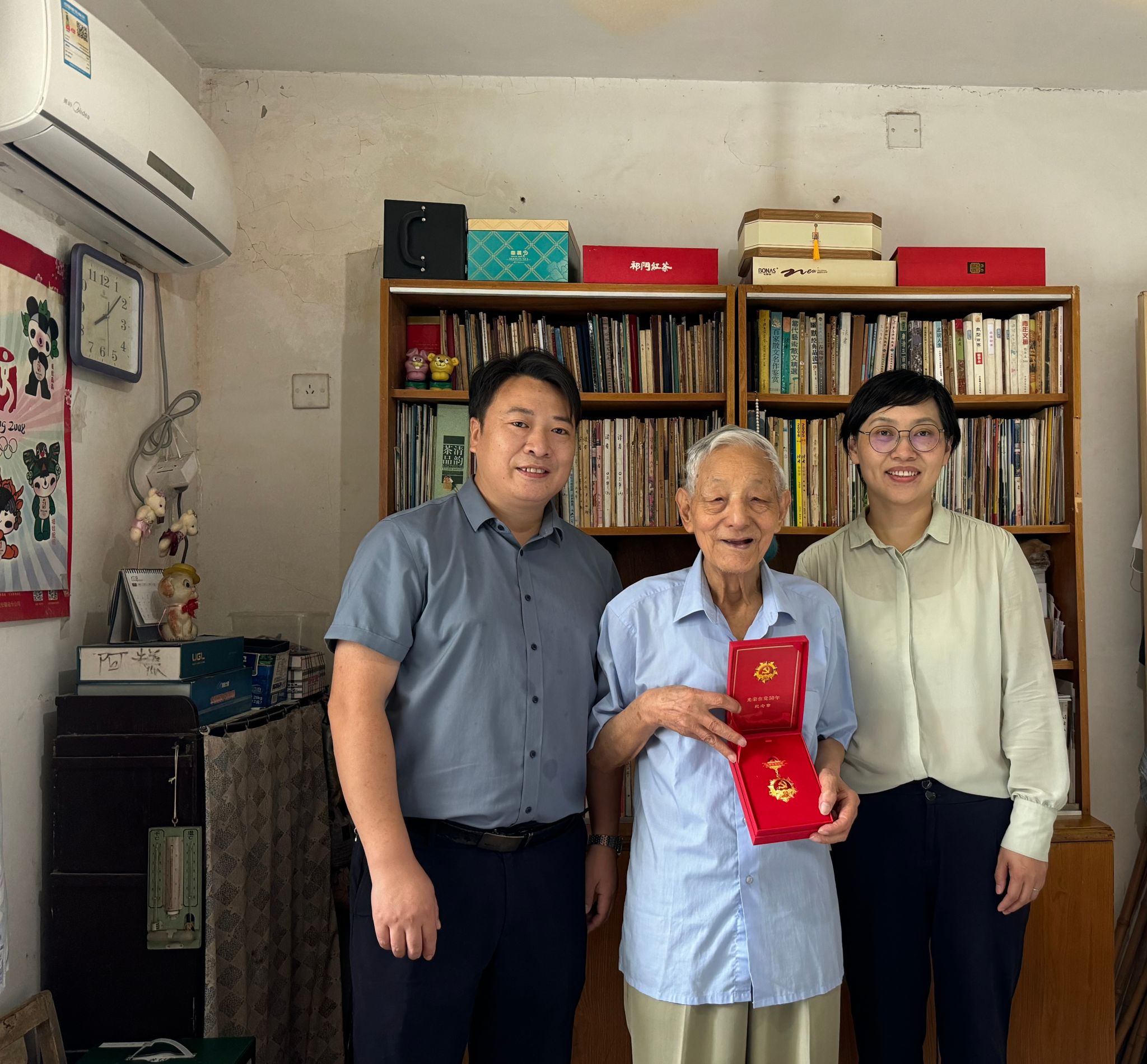致敬“光荣在党50年”走访慰问老党员。“七一”当天,学院党委书记刘柳、副书记汪小强走进老党员潘锡康老师家中,为他颁发纪念章,关切询问身体情况、生活状况,了解困难问题,致以节日问候和祝福。潘锡康激动地表示,非常感谢党的关怀和组织的厚爱,虽然退休了,但会继续讲好党的故事,传递好植保声音。