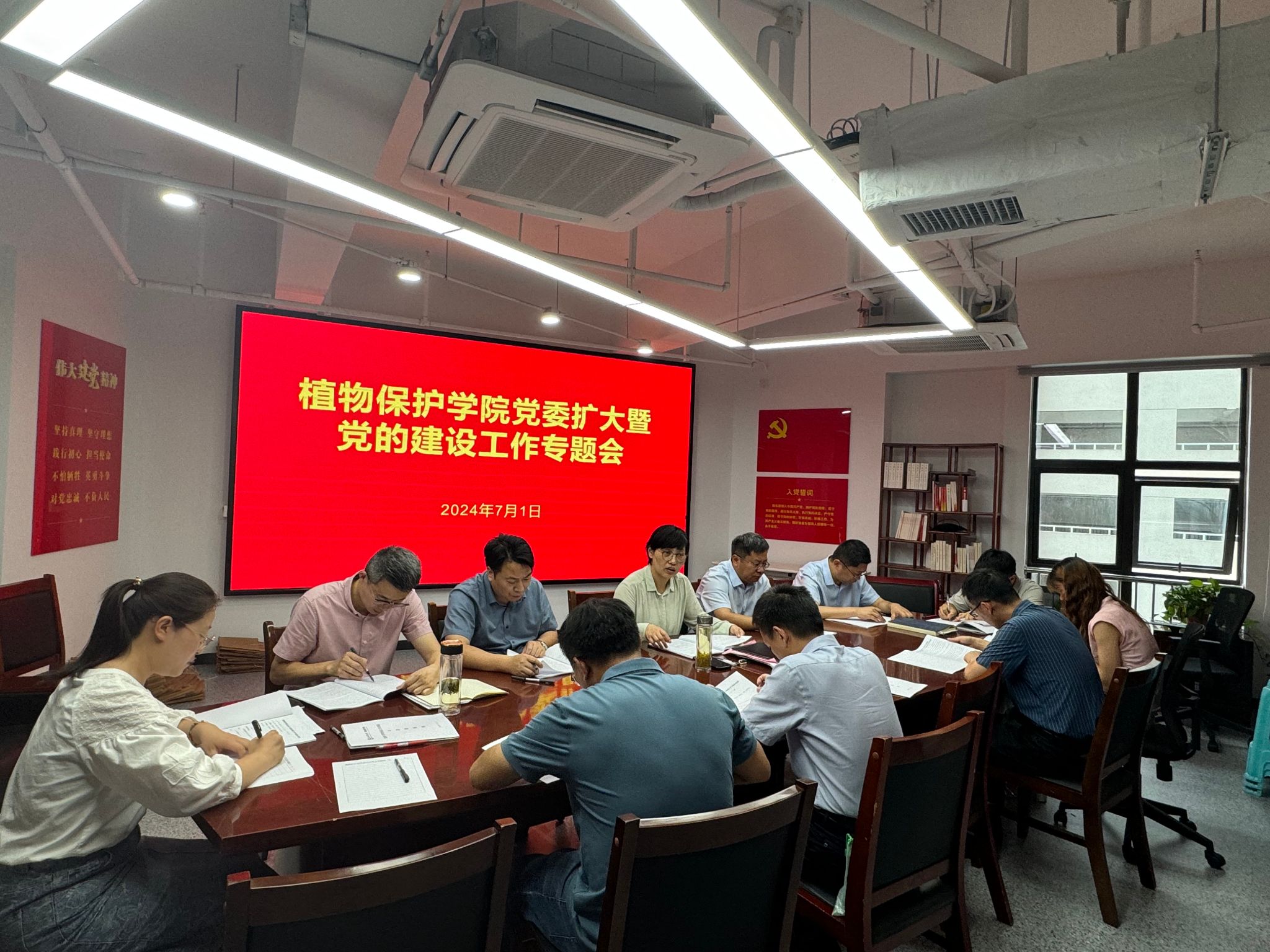 凝心聚力铸党魂,砥砺奋进促发展。7月1日下午,学院党委在研究生B楼1501室,组织党委委员、支部书记和副书记等召开党委扩大会,专题研究学院党的建设工作。会议集中学习了习近平总书记在中共中央政治局第十五次集体学习时重要讲话精神、关于党的建设和组织工作的重要指示精神、重要文章《新时代新征程中国共产党的使命任务》,共产党员网《习近平总书记关于党的建设的重要思想》《习近平总书记关于党的自我革命的重要思想》,以及习近平总书记关于关于党的政治建设、高校党的建设、依规治党等重要论述和人民日报评论员文章等。会上,各支部报告了上半年支部工作开展情况,与会人员就“深学细悟中国共产党纪律处分条例、以严明纪律规矩保障学院高质量发展”为主题作交流发言。