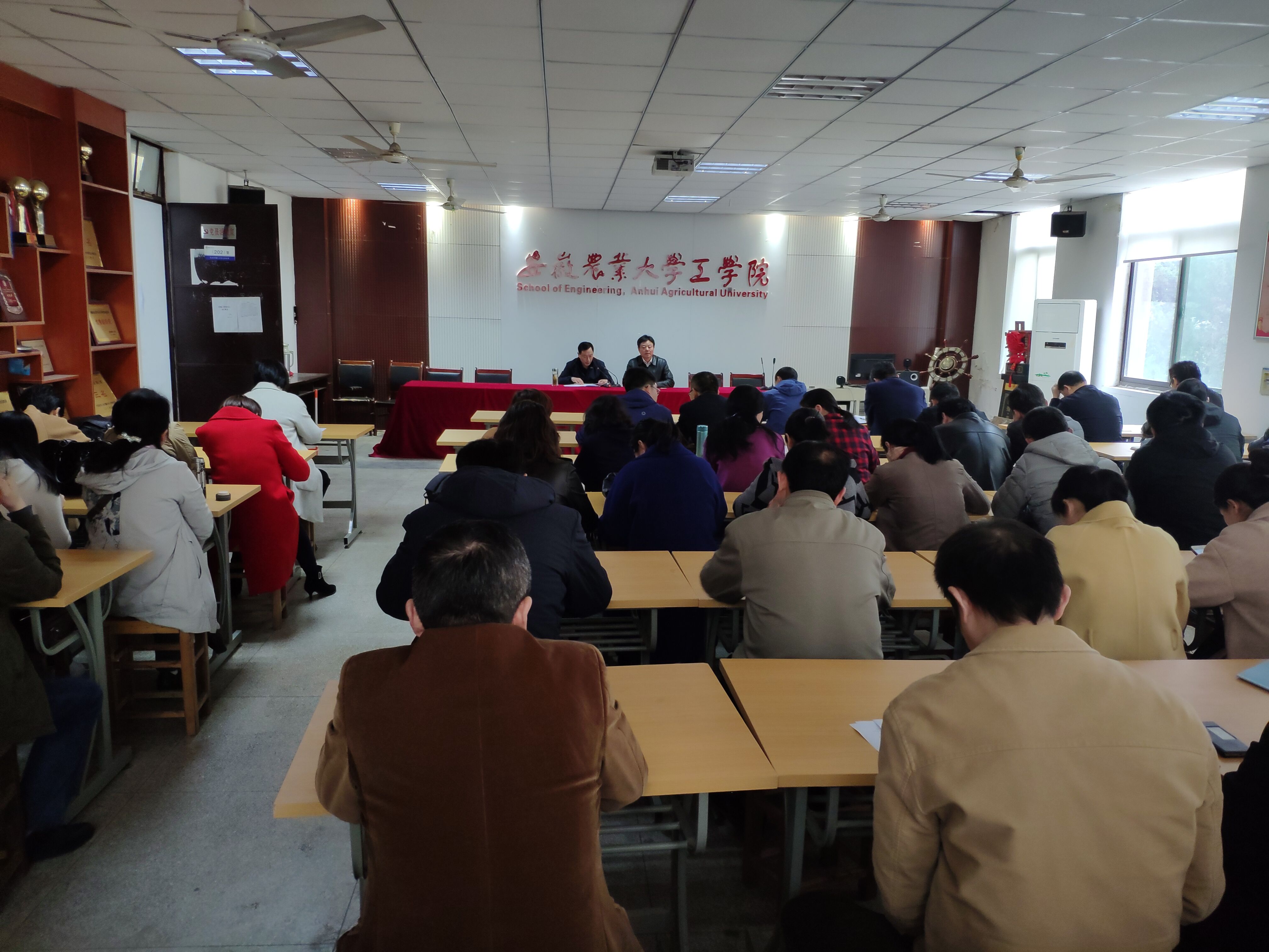 本网讯 3月27日下午,工学院在三教202教室召开全体教职工大会,传达学习校六届七次党代会和六届五次教代会精神。学院党委书记甘传鹤主持会议。