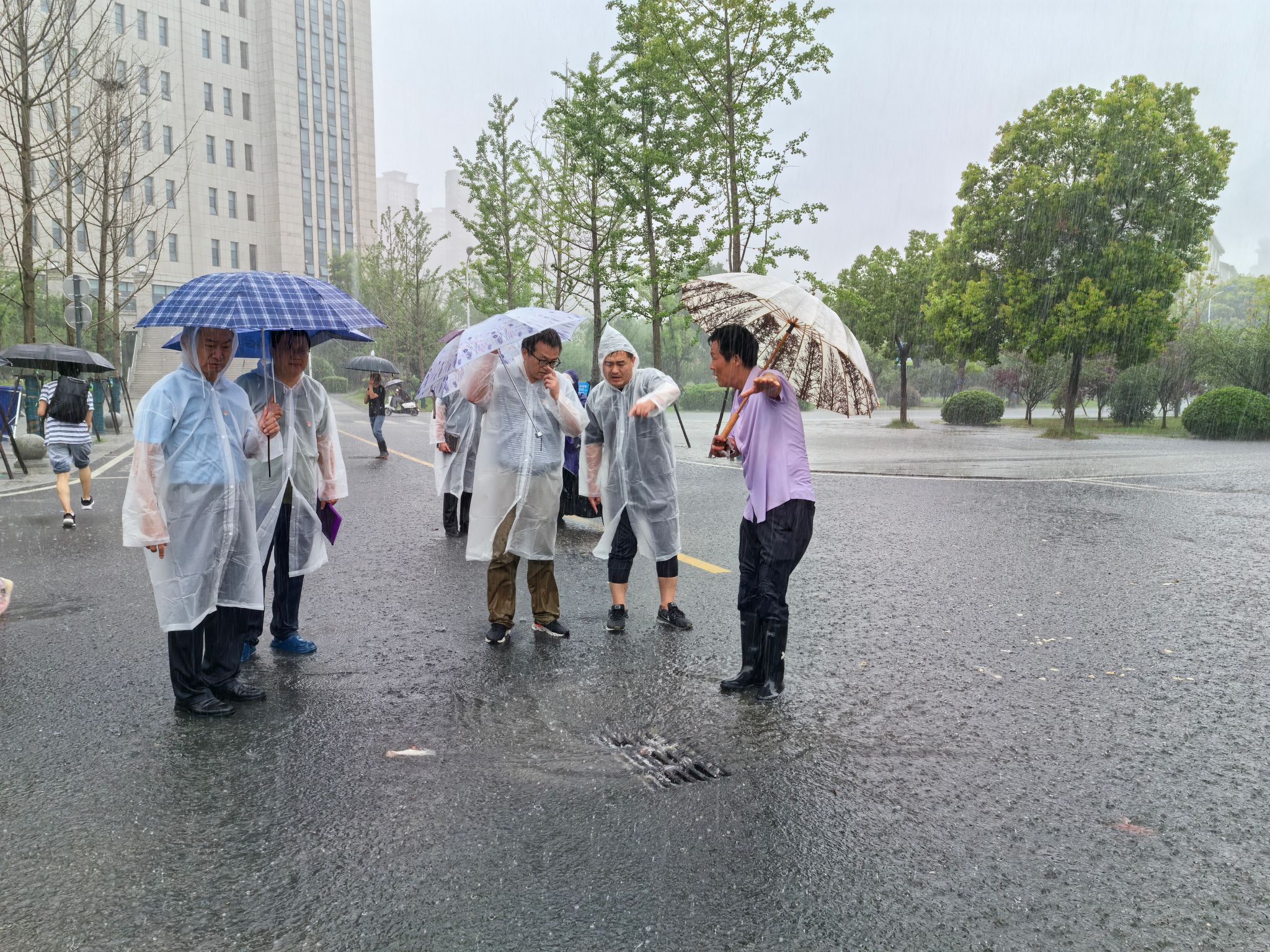 会后,与会全体党员前往学校东西区、大学生公寓现场检查物资储备、楼顶雨水沟清淤、人行道下水疏通、房屋漏水和墙体倒塌隐患排查等防汛工作开展情况,对现场发现的枯叶、淤泥堵塞等情况进行疏通。