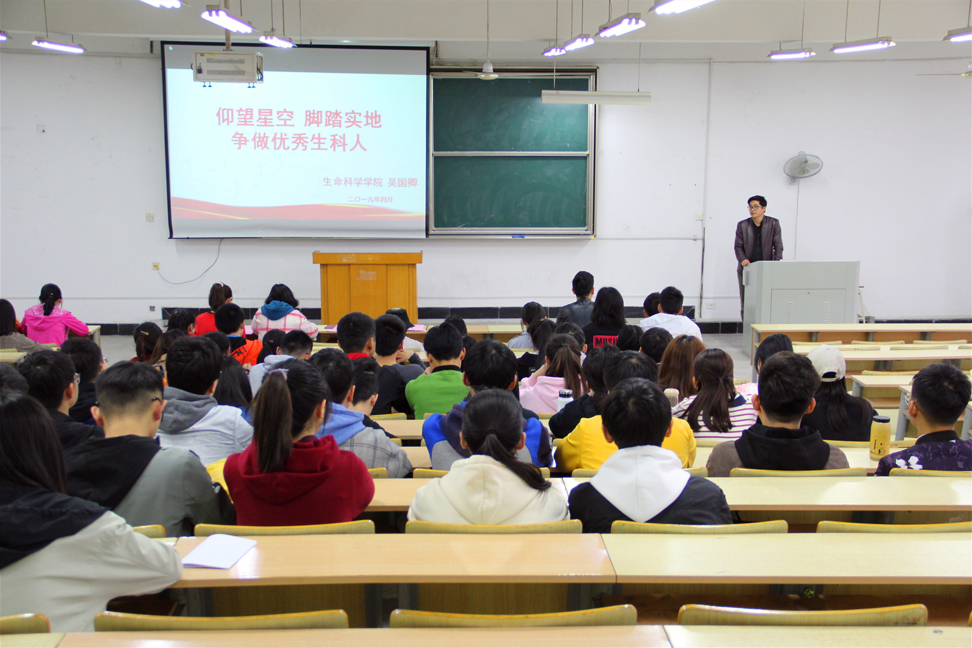 本网讯 4月3日中午,生命科学学院院级“青马班”开班仪式暨“我与书记面对面”活动在九教129教室成功举办。生命科学学院党委副书记、副院长吴国卿参加了开班仪式并做专题辅导报告,学院团委老师、院级青马班全体成员参加开班仪式,会议由团委老师主持。