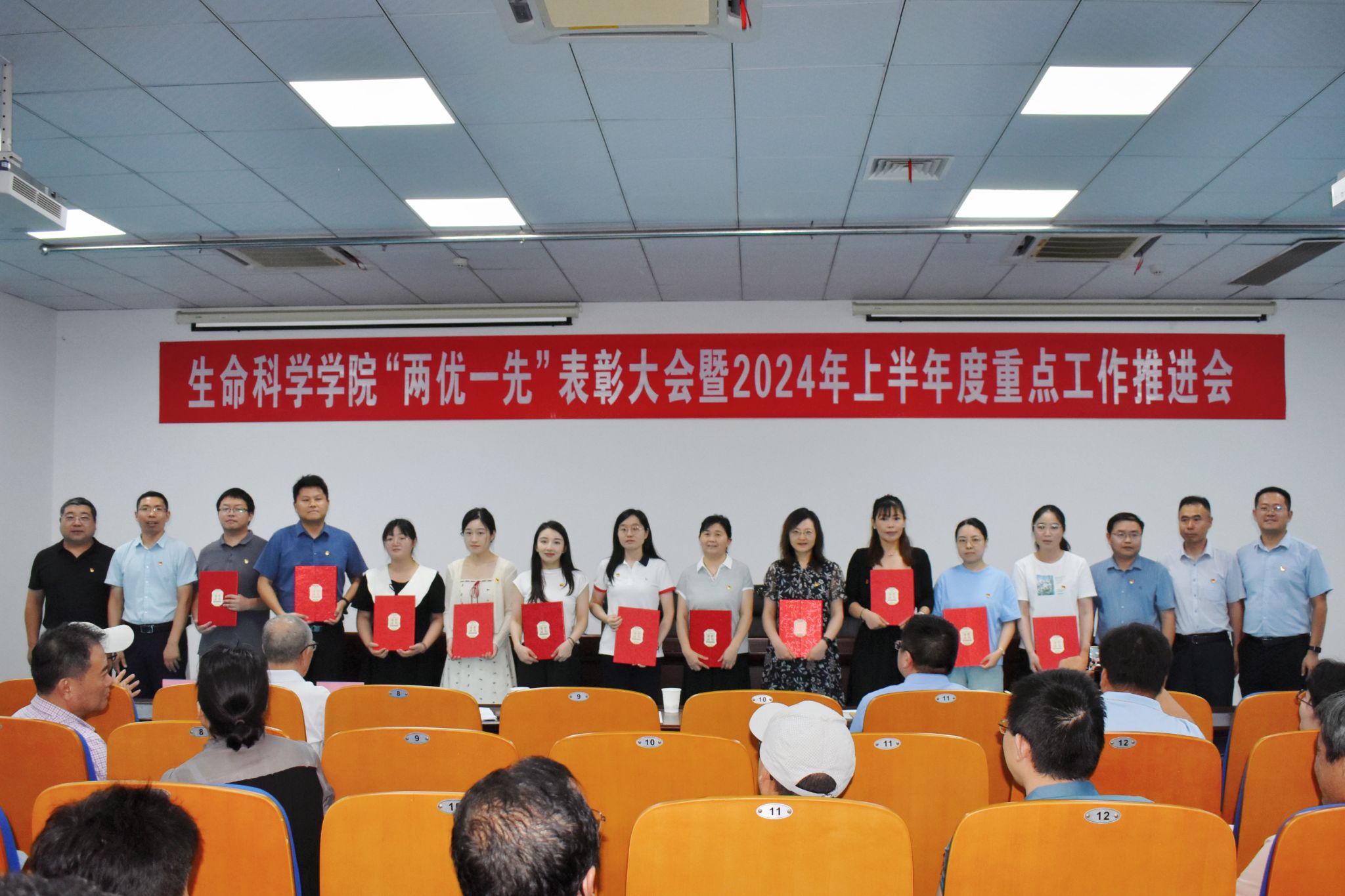 本网讯 7月3日下午,生命科学学院在生物科技楼B438报告厅召开“两优一先”表彰大会暨2024年上半年重点工作推进会。学院党政班子、全体教职工参加会议。