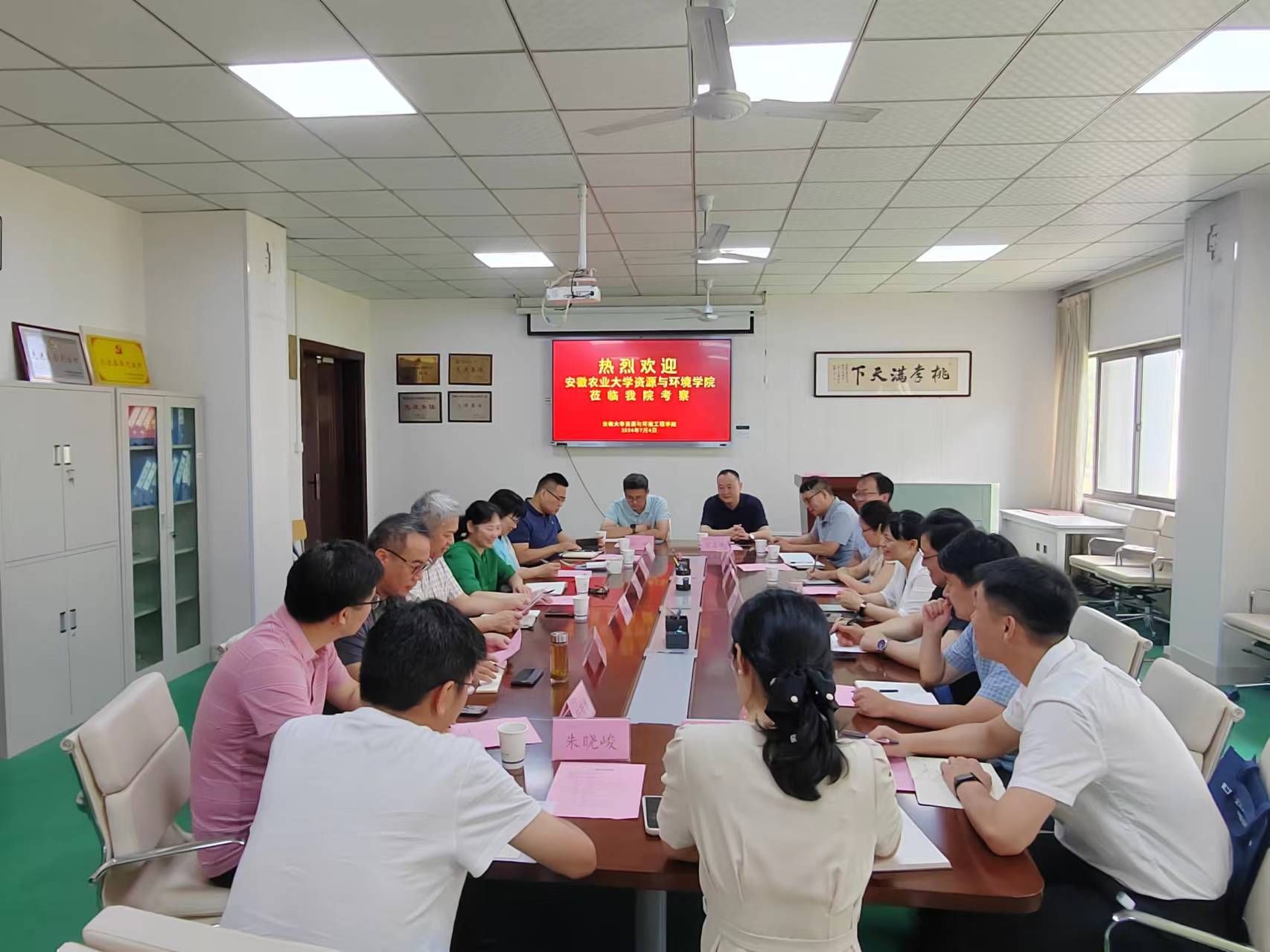 本网讯 7月4日,资源与环境学院党委书记王琼、院长张震带队赴安徽大学资源与环境工程学院调研。安徽大学资源与环境工程学院党委书记、院长石先阳,党政领导,双方系部主任、党支部书记等参加了座谈交流。