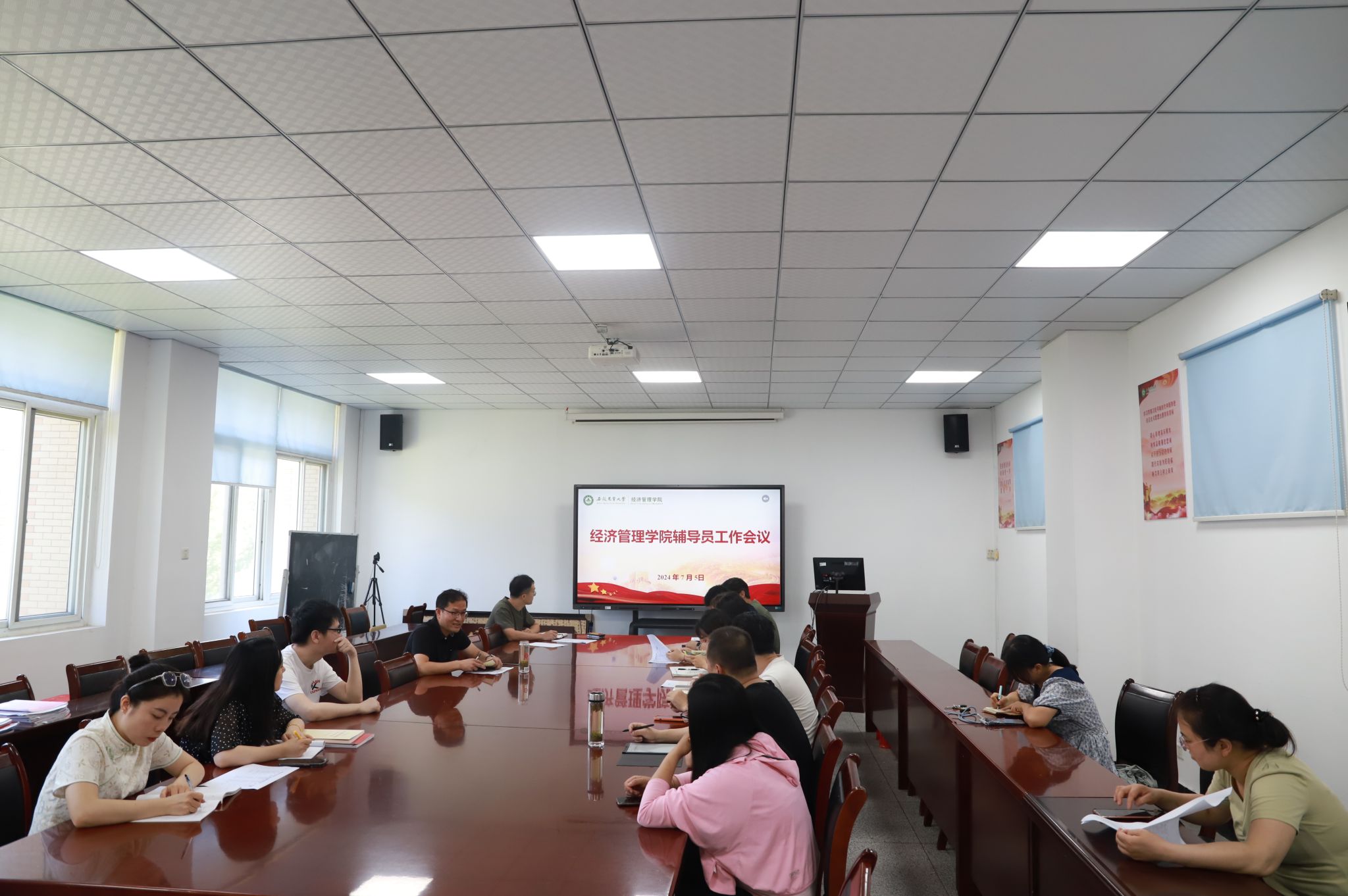 本网讯 为做好考试周诚信教育和暑期各项工作安排,7月5日上午,经济管理学院在304会议室召开辅导员工作例会,全体专兼职辅导员参加了此次会议,会议由学院党委副书记、纪委书记周涛主持。