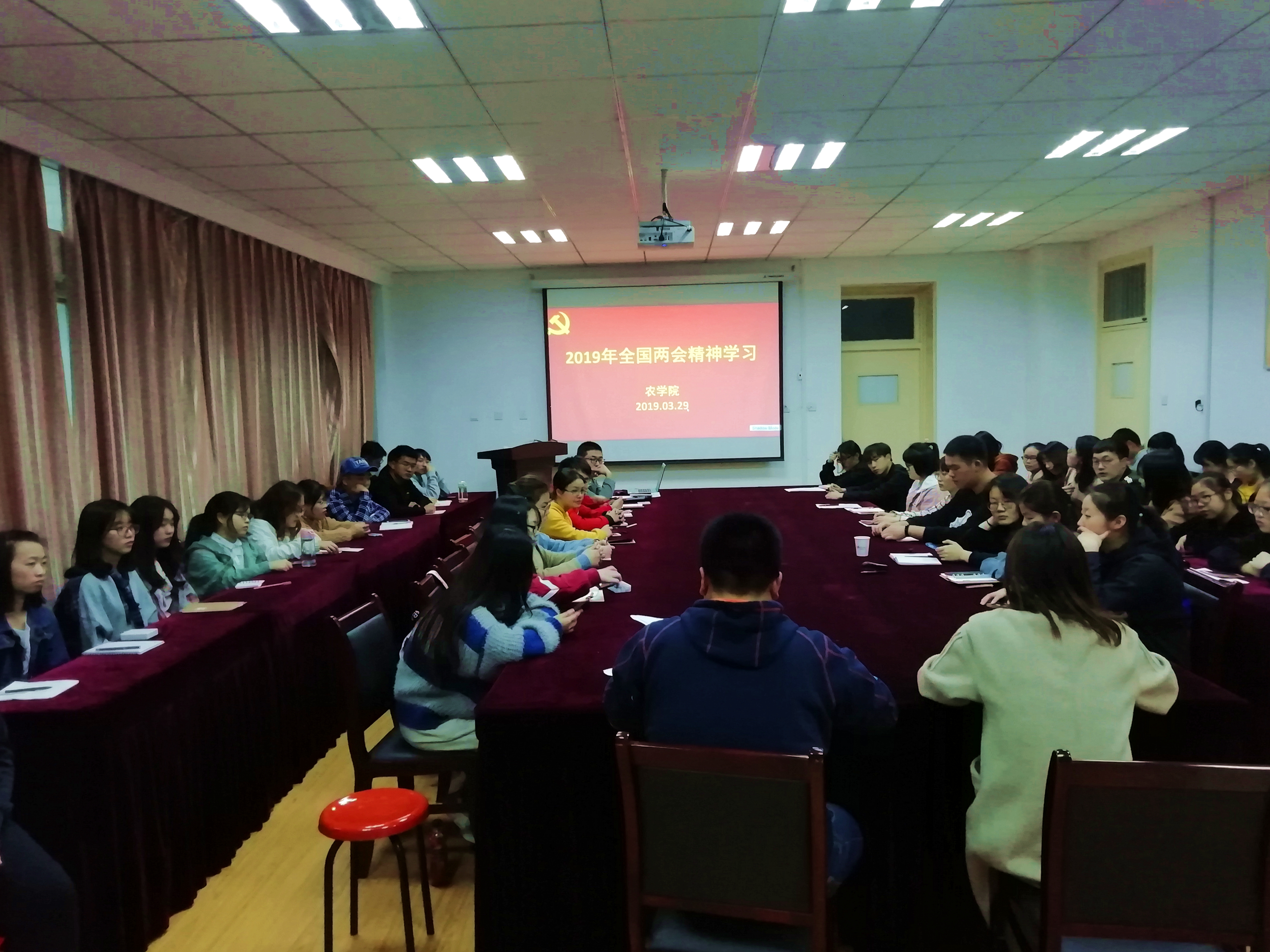 为深入学习全国“两会”精神,农学院围绕“两会”相关文件,相继开展各党支部交流学习、全体主要班干部、团干部集中学习、主题班会等形式的深入学习,使学院学生及时了解了2019年“两会”精神,强调了党的纪律性、组织性等重要问题。