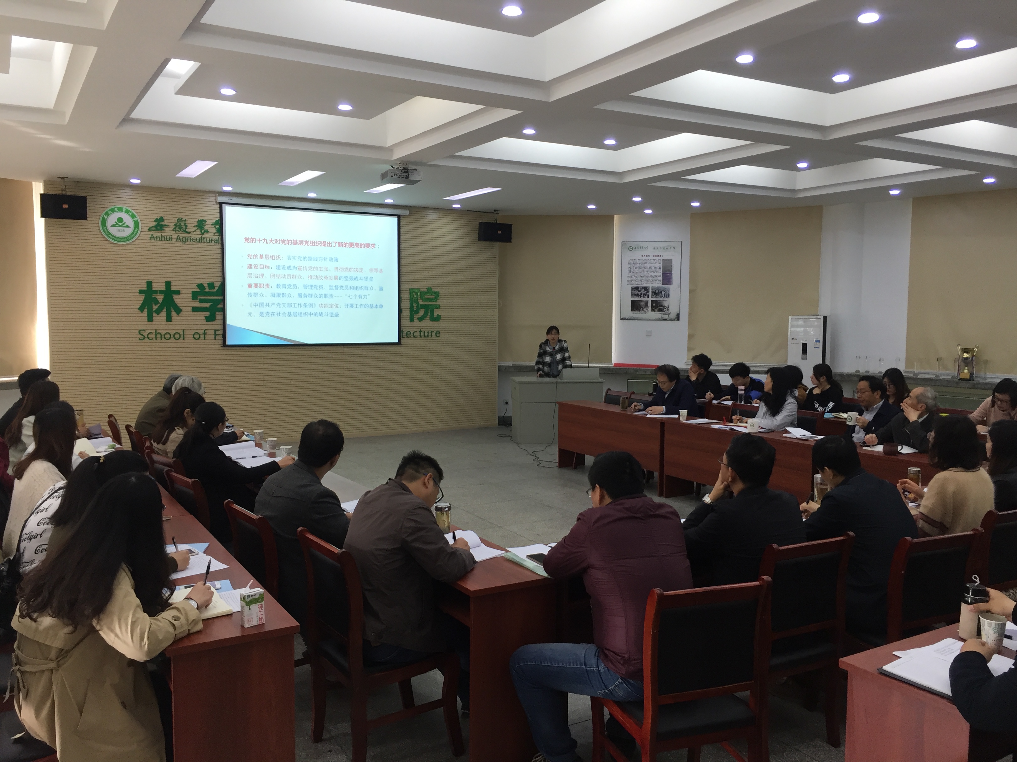 江正君围绕贯彻习近平总书记在学校思想政治理论课教师座谈会上的重要讲话精神,以林学与园林学院的师资队伍为主体,探讨如何把专业学习和思想政治教育有效结合,培养有理想、有本领、有担当的新时代青年。报告从学院师生实际出发,明确新时期各教工党支部党建工作要在教育教学、科研管理等重大事项中加强政治把关作用,团结凝聚教师把思想引领和价值观塑造融入教育教学,教育引导教师在课堂教学、论坛讲座等活动中坚持正确的政治方向、政治立场、政治原则。大力推进师德师风建设,关心了解教师的思想政治状况,勉励老师们潜心教学、不负重托;端正态度、完善自我、实现超越,站稳讲台、做青年学子成长成才的引路人。