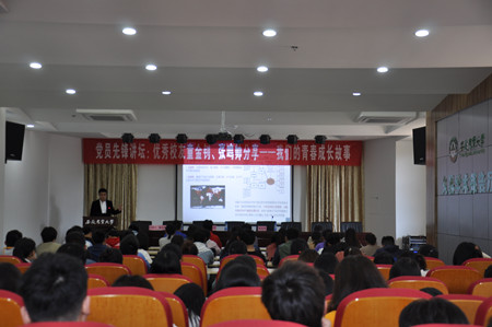 本网讯 为创新大学生思想政治教育形式和内容,帮助学生做好职业生涯规划,4月17日下午,资源与环境学院优秀校友“党员先锋讲坛”2019年第1期邀请中国科学技术大学硕士研究生、我校2018届环境科学专业毕业生童金钊,环境工程专业毕业生张鸣帅两位同学担任主讲嘉宾,为全院学生党员、入党积极分子和部分学生近150人分享他们的学习、成长历程。报告会由学生第二党支部书记主持。