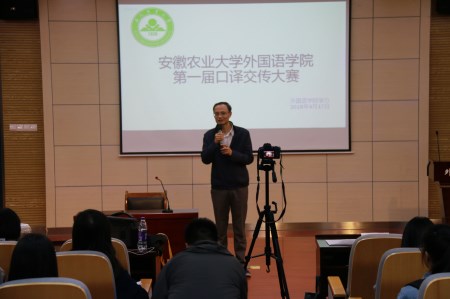 比赛开始前,孙志农致开幕词,他首先向辛苦筹办此次比赛的各位老师与同学表示感谢,同时指出,此次大赛的举办为本校学生提供了一个锤炼口译技能,展示自我风采的舞台,并鼓励同学们积极参加口译、演讲与辩论等各项活动,在创新实践中主动锻炼自已,扩大时事视野,提高心理素质,在培养职业意识的同时提升双语能力。