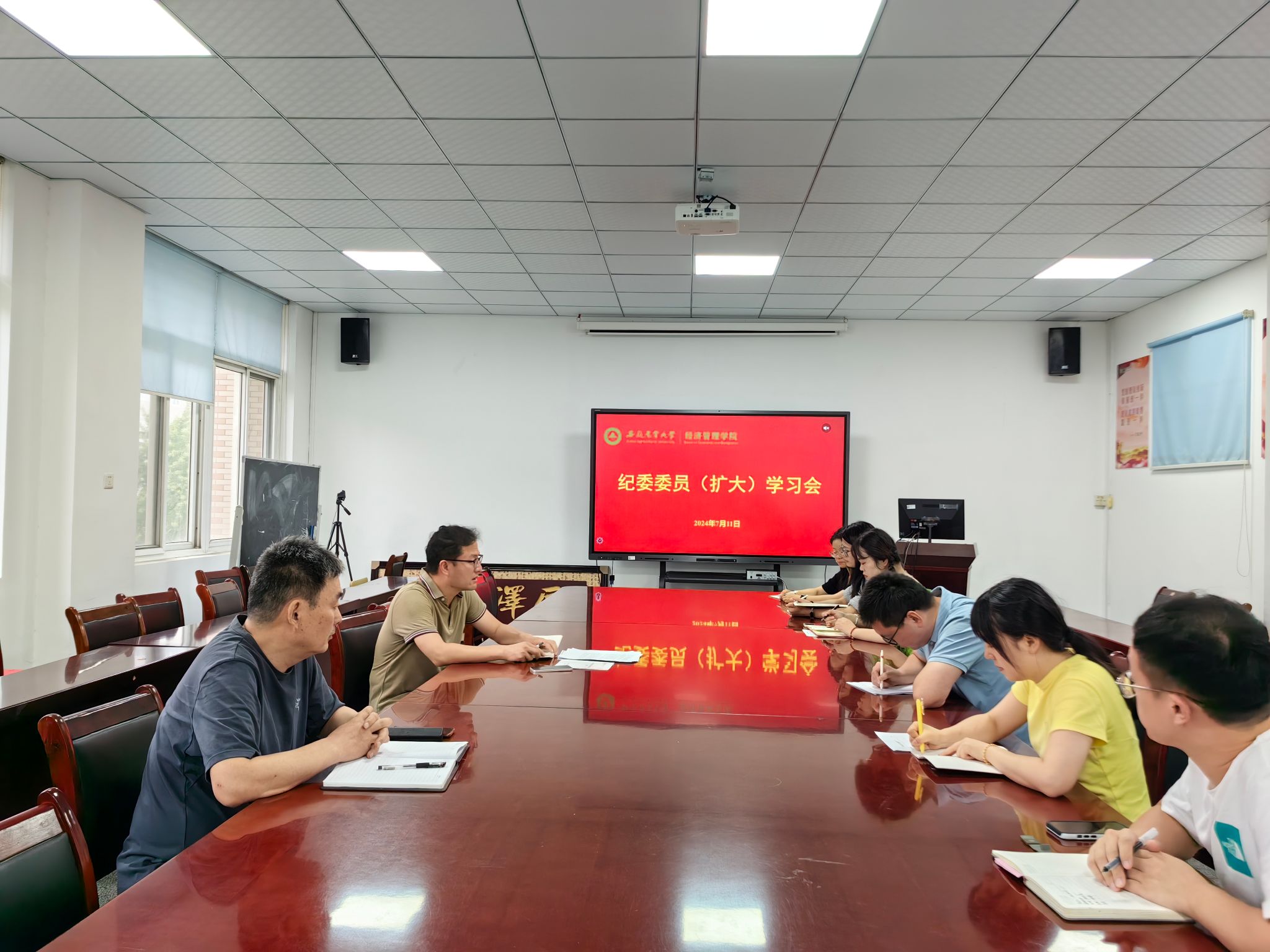 本网讯 7月11日上午,经济管理学院纪委委员(扩大)会议在经管楼304会议室召开。学院纪委委员、学生党支部书记参加会议。会议由学院党委副书记、纪委书记周涛主持。