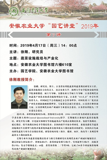 本网讯 4月17日下午,我校兼职硕士生导师、江苏省农科院蔬菜所蔬菜栽培研究室主任徐刚研究员应约做客“园艺讲堂”。园艺学院院长方从兵为徐刚颁发了“园艺讲堂特约专家”荣誉聘书,并带领学院师生共同聆听了精彩讲座。