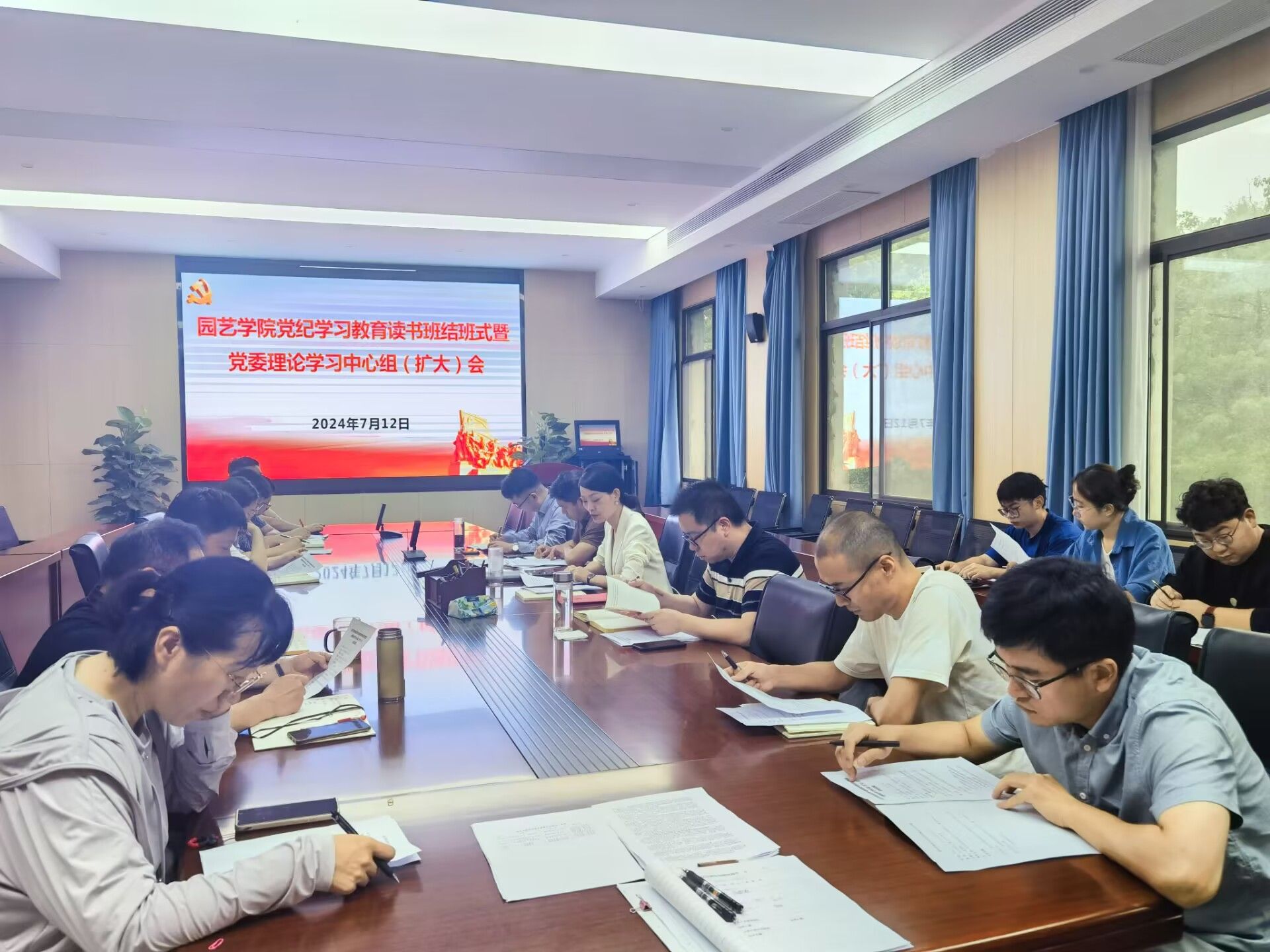 本网讯 7月12日上午,园艺学院在二教326会议室召开党纪学习教育读书班结班式暨党委理论学习中心组(扩大)会。会议由学院党委书记赵冠艳主持,学院党政领导班子成员、党委委员、纪委委员、组织员、各党支部书记、支委参加会议。