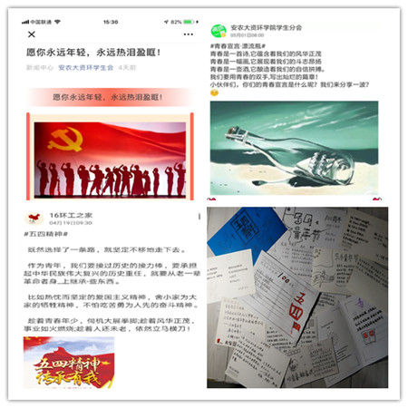 为庆祝新中国成立70周年、纪念五四运动100周年,激励和引领广大青年团员传承“五四”精神,积极投身中国特色社会主义事业的伟大实践,4月份以来,资源与环境学院团委精心策划,广泛宣传,组织各团支部认真开展形式多样、丰富多彩的“青春心向党 建功新时代”主题团日系列活动。