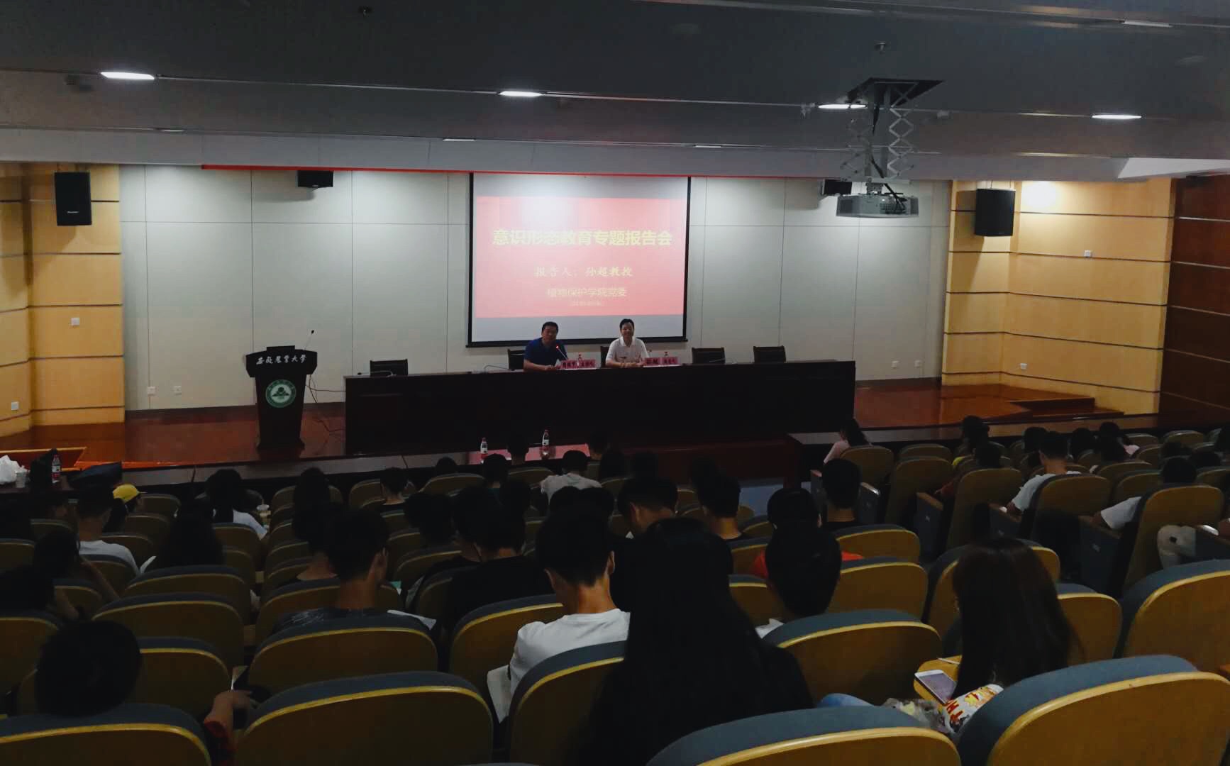 本网讯 6月6日上午,植物保护学院在图书馆第二报告厅举办意识形态教育专题报告会。人文社会科学学院党委书记孙超教授应邀以《建设具有强大凝聚力和引领力的社会主义意识形态》为题,为近200名2018级学生和部分学生党员、预备党员作了精彩报告。院党委书记檀根甲,副书记、纪委书记、副院长戴照力参加报告会。