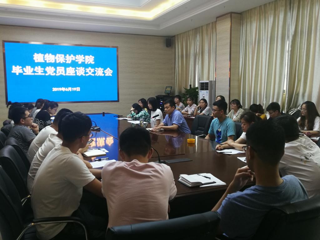 本网讯6月19日,植物保护学院召开毕业生党员座谈交流会,征集毕业生对学院工作的意见建议,并举办“最后一次党课”活动。学院党委副书记、纪委书记、副院长戴照力认真记录同学们的发言,并从永葆党员政治本色、彰显安农精神底色、提高人生幸福成色等三个方面,为毕业生党员在离校前上了一堂党课。