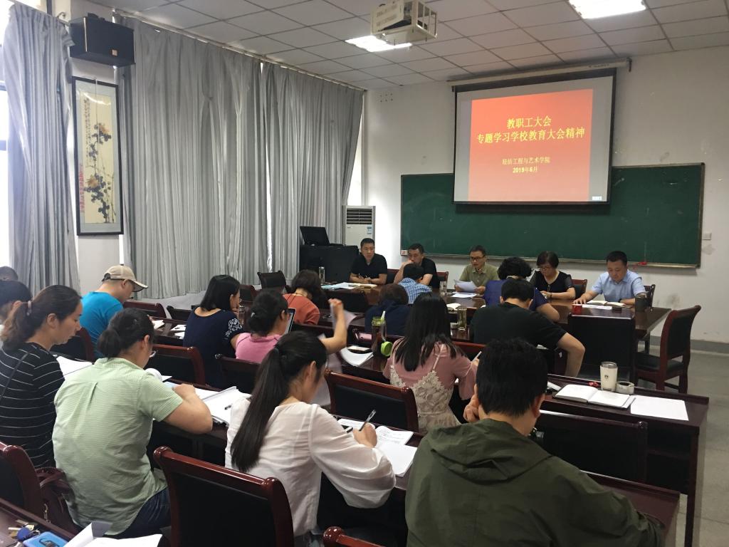 为深入学习贯彻全国全省教育大会、学校思想政治理论课教师座谈会及新时代全国高等学校本科教育工作会议精神,轻纺工程与艺术学院以学校教育大会的召开为契机,组织开展师生专题学习、集中研讨,并结合学院学科专业实际,精心谋划学院本科教育工作。