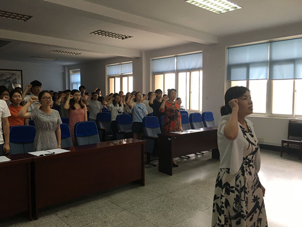 本网讯为了庆祝建党98周年,进一步教育引导广大党员自觉践行“四讲四有”,不忘初心葆本色、牢记使命勇担当,经济管理学院于6月26日中午在经管楼321开展了新党员专题党课暨入党宣誓仪式。院党委书记王伟、院党委副书记、纪委书记、副院长倪健、学生党支部书记和新发展的76名学生党员参加。会议由院办公室主任主持。