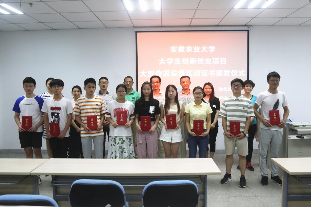 本网讯 6月27日上午,教务处和生物技术中心在生物科技楼112会议室举办大学生创新创业训练计划项目大型仪器设备实训操作证书颁发仪式。生物技术中心主任杜先锋、教务处负责人、项目指导老师及优秀学生代表等参加了上述活动,颁发仪式由生物技术中心副主任主持。