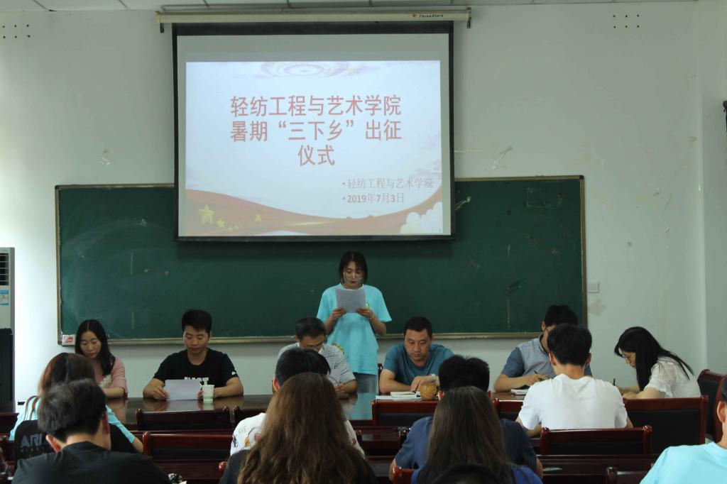 轻纺工程艺术学院2019年大学生暑期“三下乡”社会实践活动以“乡村振兴谱新篇 青春建功新时代”为主题,结合新中国成立70周年和五四运动100周年,紧紧围绕“校友企业就业创业工作走访调研”、“精准扶贫助力乡村振兴”、“艺术服务乡村振兴”等项目组建了4支校级团队和7支院级团队,组织学生在实践锻炼中受教育、长才干、作贡献,引导大学生在社会实践中自觉树立和践行社会主义核心价值观,以青春建功的实际行动,为全面建成小康社会贡献青春力量。(刘旭通讯员:高寻寻)