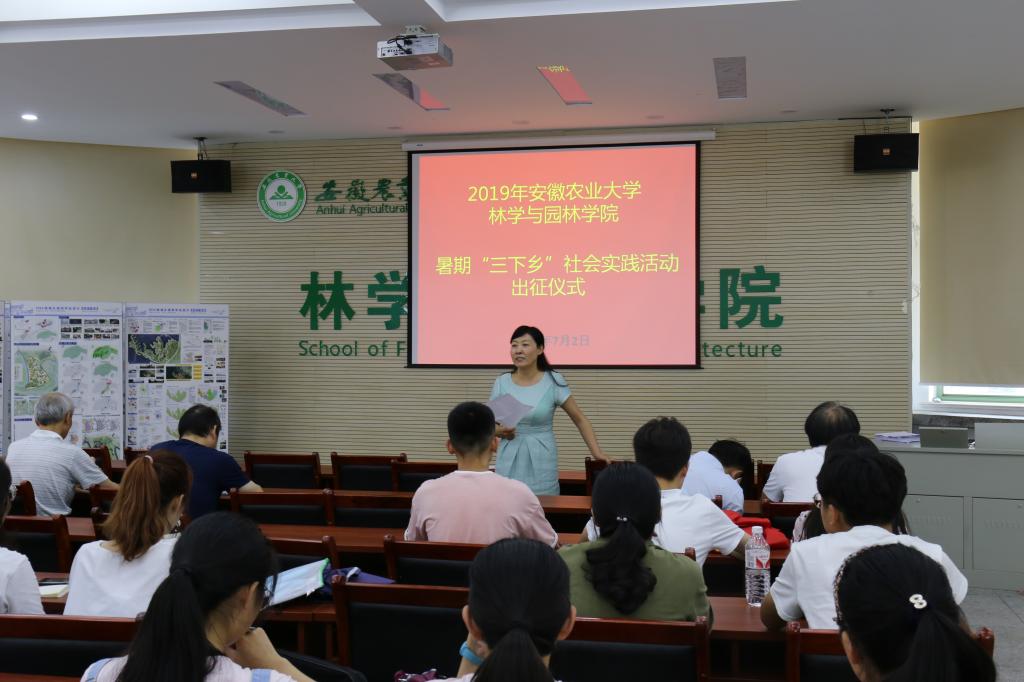 本网讯7月2日下午,林学与园林学院2019暑期“三下乡”社会实践活动出征仪式在林学楼二楼报告厅举行,院党委书记唐红萍、院长刘盛全等全体党政领导参加出征仪式。仪式由院团委老师主持,各支出征队伍代表参加。