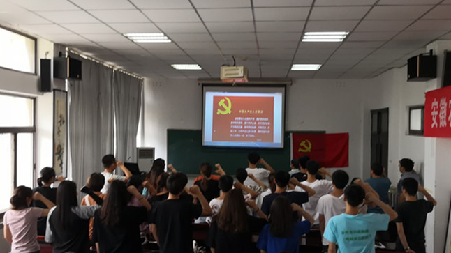 开展一次“主题党日”活动。7月3日中午,院党委集中开展了新党员入党宣誓及老党员重温入党誓词活动,大家举起右拳,面向党旗郑重宣誓,增强了在场每一位党员的光荣感、责任感和使命感。7月5日上午,院党委书记王冬平、院党委副书记、院长杜兆芳带领学院各党支部党员师生共计30余人赴合肥监狱开展廉政警示教育活动。