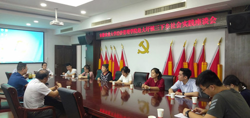 随后,王伟一行来到大圩镇人民政府会议室召开暑期“三下乡”社会实践活动座谈会。大圩镇人民政府党委委员对师生一行表示热烈欢迎,大圩镇人民政府搬迁办主任向师生们详细介绍大圩镇基本情况,指出在大圩农业发展中,我校师生给予了很多技术支持。