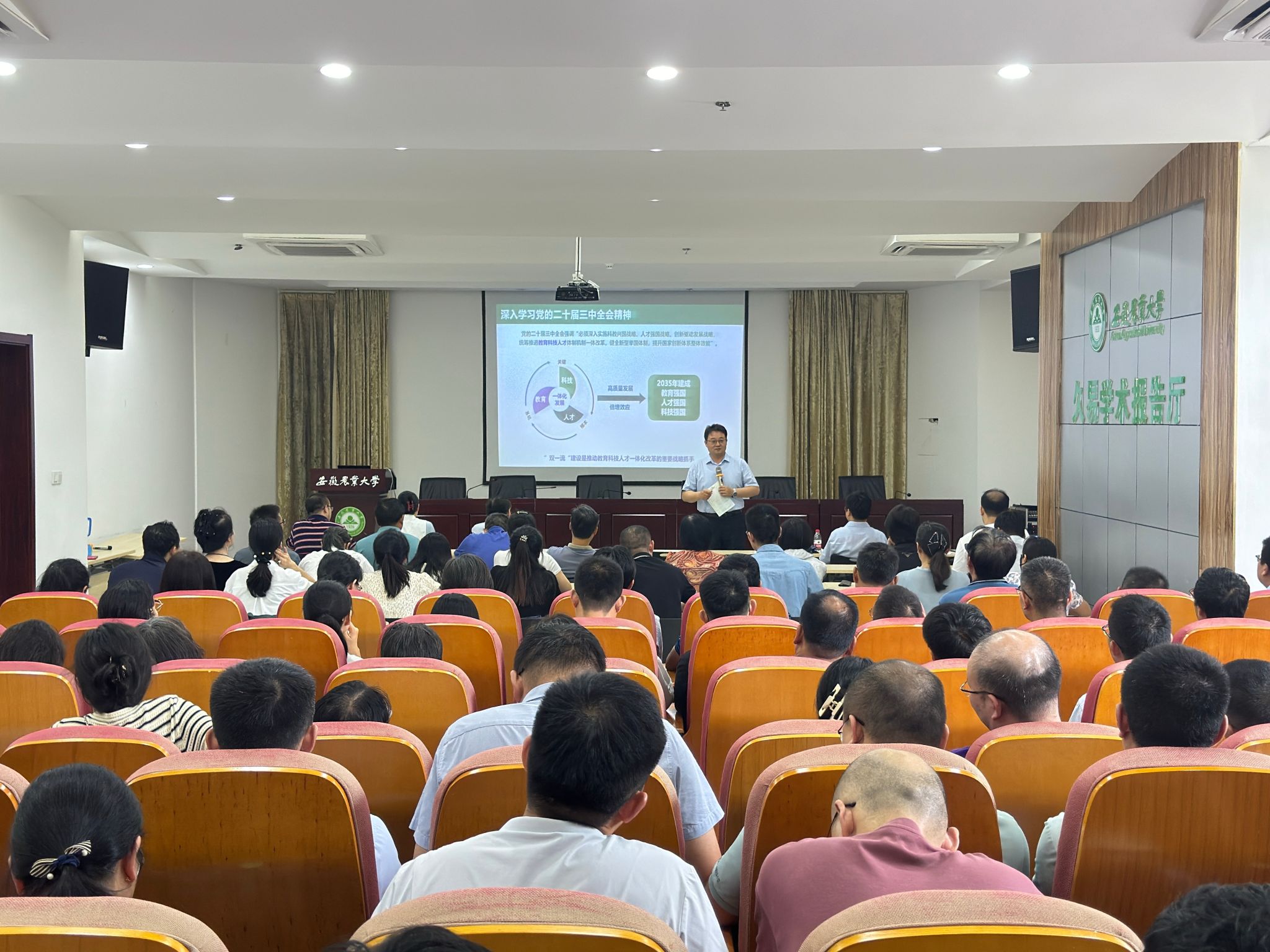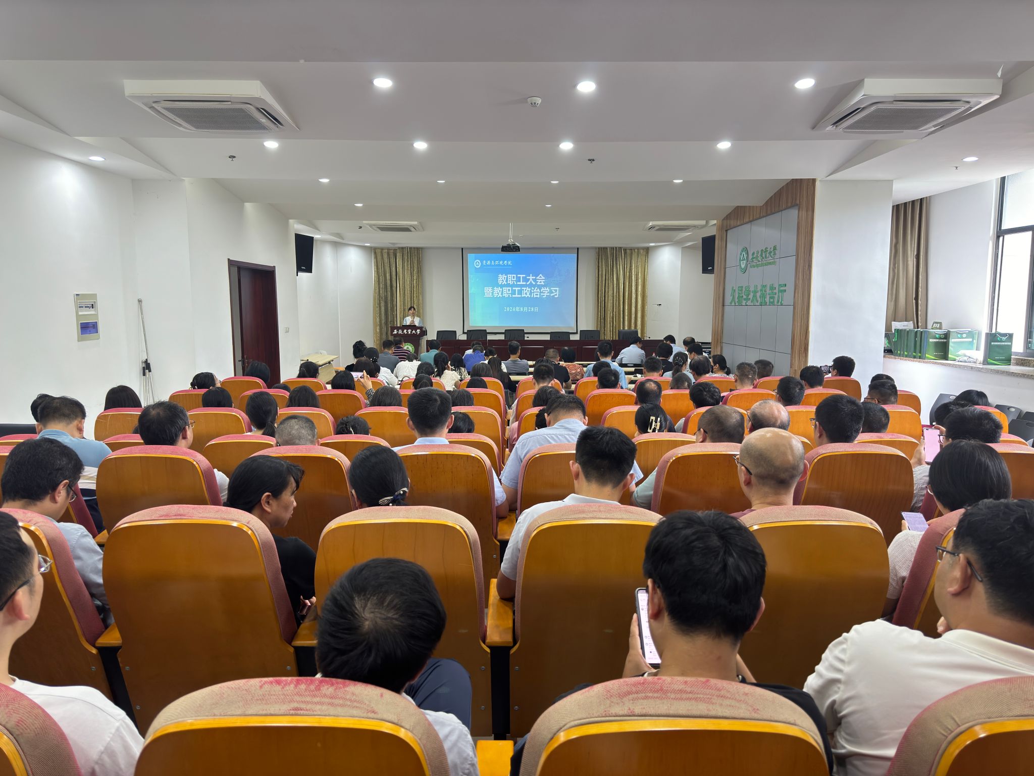 本网讯 8月28日下午,资源与环境学院召开教职工大会暨教职工政治学习,专题传达学习党的二十届三中全会精神,部署落实校党委决策,安排新学期工作任务,学院党政领导和全体教职工参加。