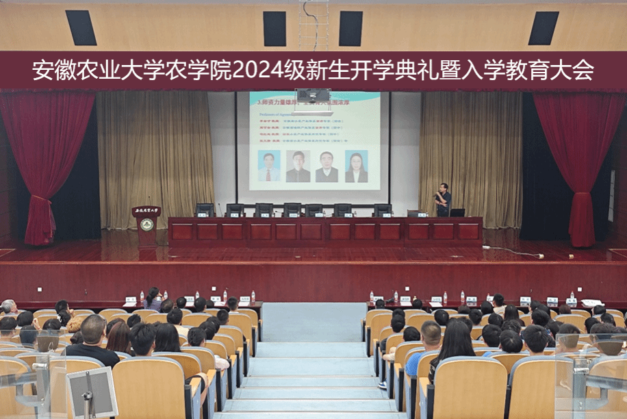 本网讯 9月2日晚,农学院2024级新生开学典礼暨入学教育大会在图书馆第一报告厅举行。学院全体党政领导,系部主任、2024级本科生学业班主任、2024级本硕博辅导员、部分教师代表,2024级本硕博全体新生参加开学典礼暨入学教育大会。会议由院党委副书记、纪委书记冯峰主持。
