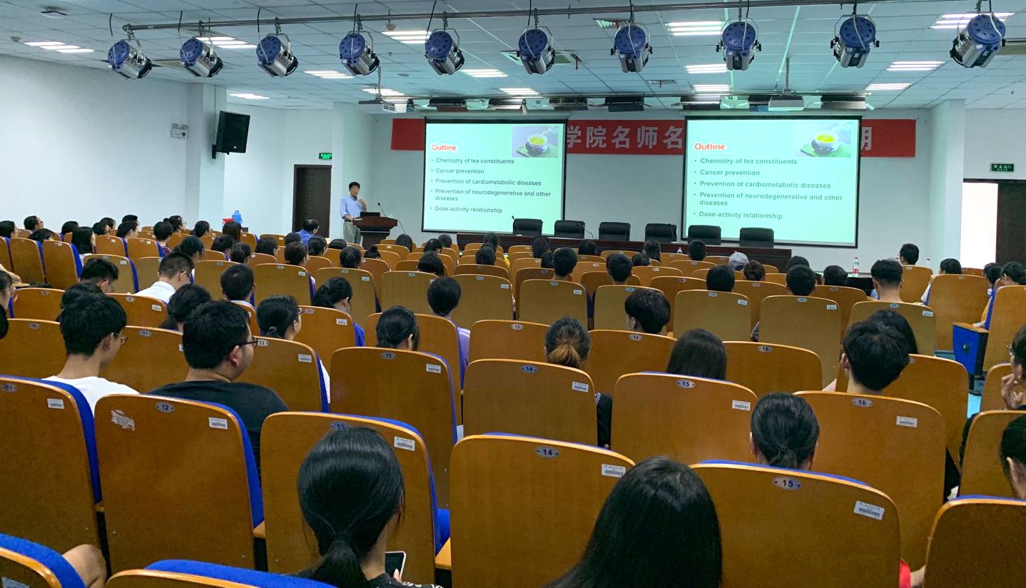 本网讯为庆祝新中国成立七十周年和我校茶学专业创建八十周年,9月12日,茶与食品科技学院邀请我校茶叶化学与健康国际合作联合实验室外方主任,美国罗格斯大学杨中枢教授做客“第一期名师名家进课堂”活动现场,在生物科技楼441教室开展了《Recent Studies on Possible Health Effects of Tea》的专题授课,90余名本科生、部分研究生和教师参加。