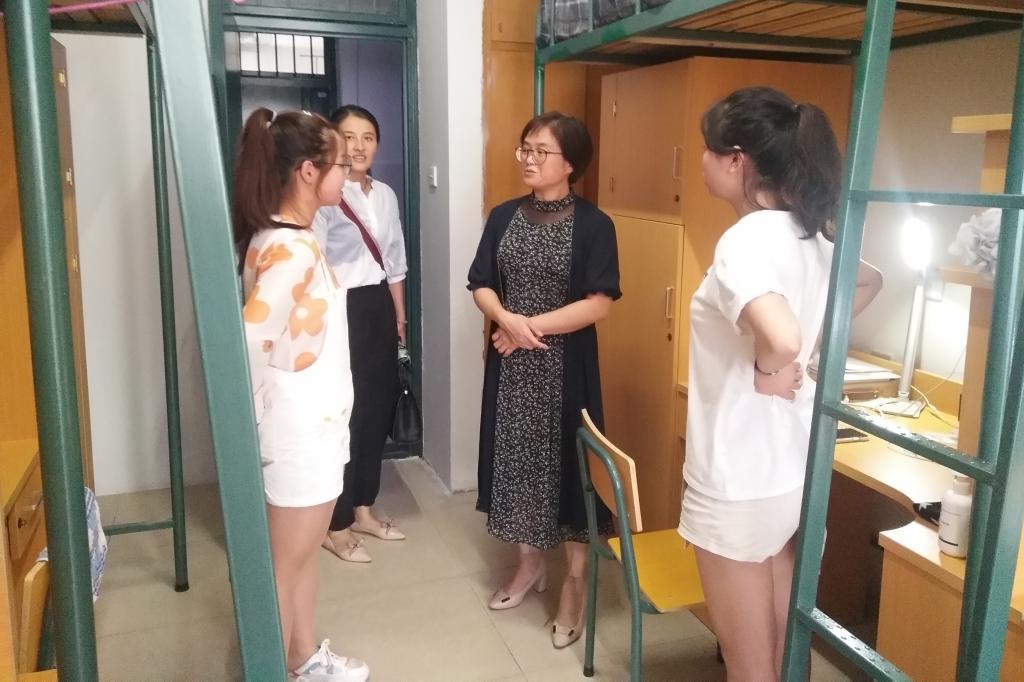 9月7日傍晚,学院领导分别前往男女新生宿舍进行实地走访慰问。走访过程中,学院领导询问了解大家进校后的感受以及生活、兴趣爱好等方面的情况,同时对同学们提出殷切希望,希望新生们尽快转变角色,熟悉新的环境,团结同学,处理好各种人际关系,以积极的心态和良好的面貌适应大学校园生活。