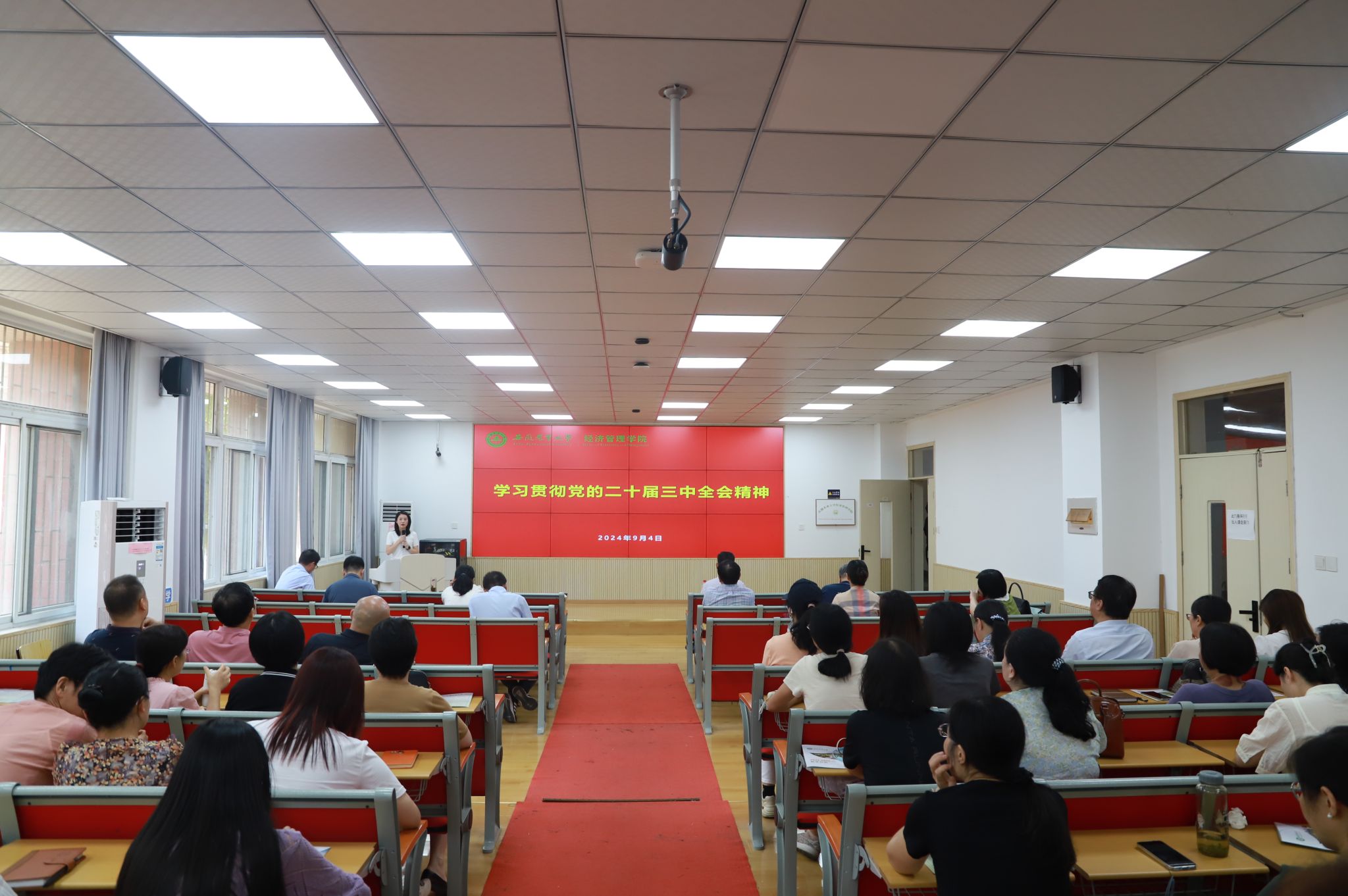 会议指出,党的二十届三中全会对进一步全面深化改革、推进中国式现代化具有重要意义。学习好贯彻好党的二十届三中全会精神是当前和今后一个时期的重大政治任务,要求全体教职工要切实提高政治站位,把思想和行动统一到全会精神上来,把智慧和力量落实到全会确定的目标任务上来,以强烈的使命担当,高标准高质量做好全会精神的学习贯彻落实,以务实担当的工作作风为学校高质量发展贡献经管力量。