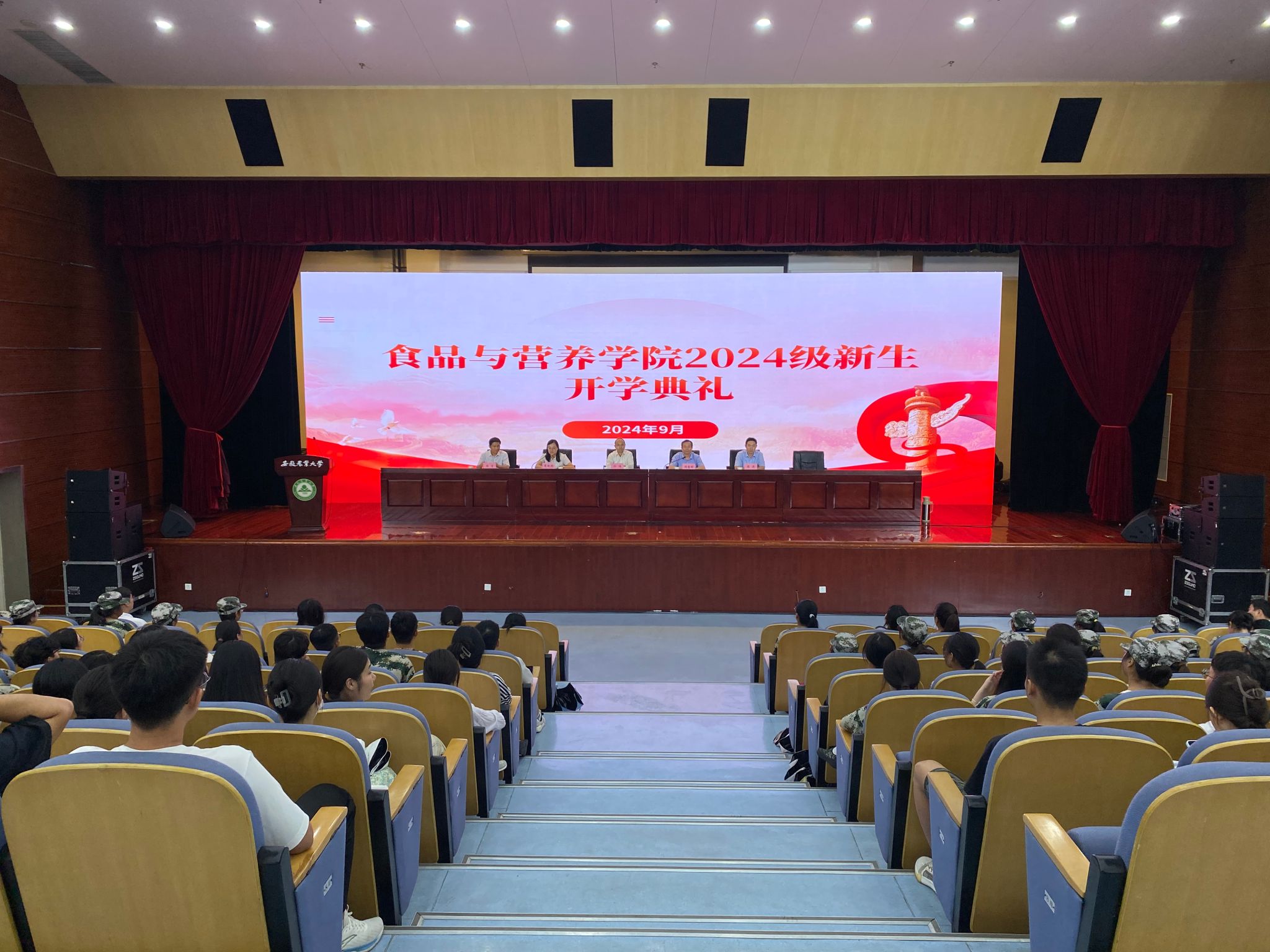 本网讯 9月11日上午,食品与营养学院2024级新生开学典礼暨入学教育大会在校图书馆第一报告厅举行,学院党政领导、系部主任、2024级新生辅导员和全体新生参加。典礼由院党委副书记、纪委书记夏晓昀主持。