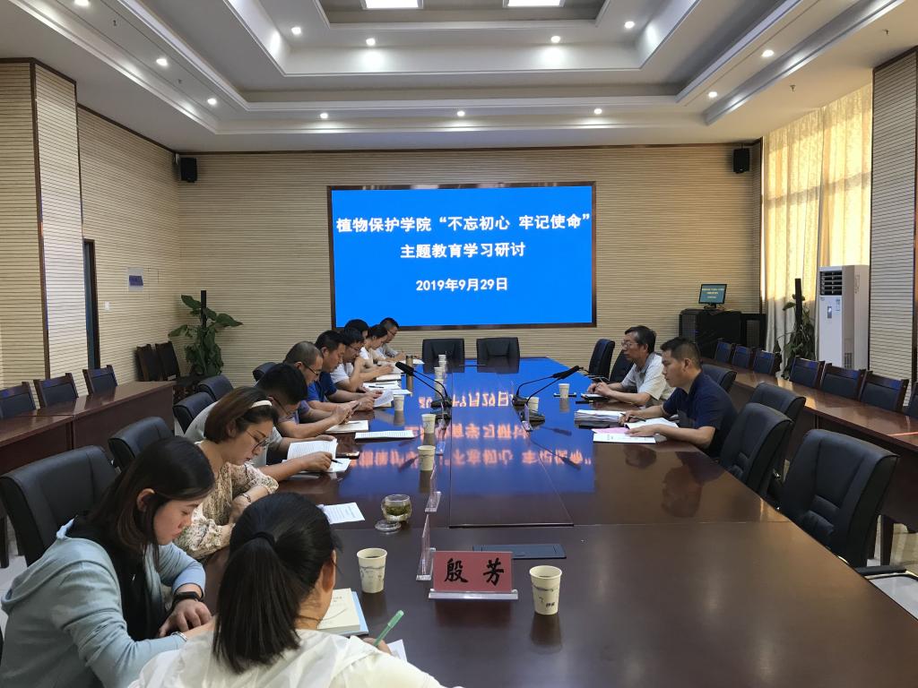 本网讯 9月29日,植物保护学院在院会议室举行“不忘初心、牢记使命”主题教育第二次集中学习研讨。校第四督导组副组长、档案馆馆长、机关第二党总支书记管志权,学校第四督导组成员、人事处(教师工作部)社保科科长兼秘书参加下午研讨交流并进行指导。院领导班子成员、党委委员和党支部书记参会。会议由院党委书记檀根甲主持。