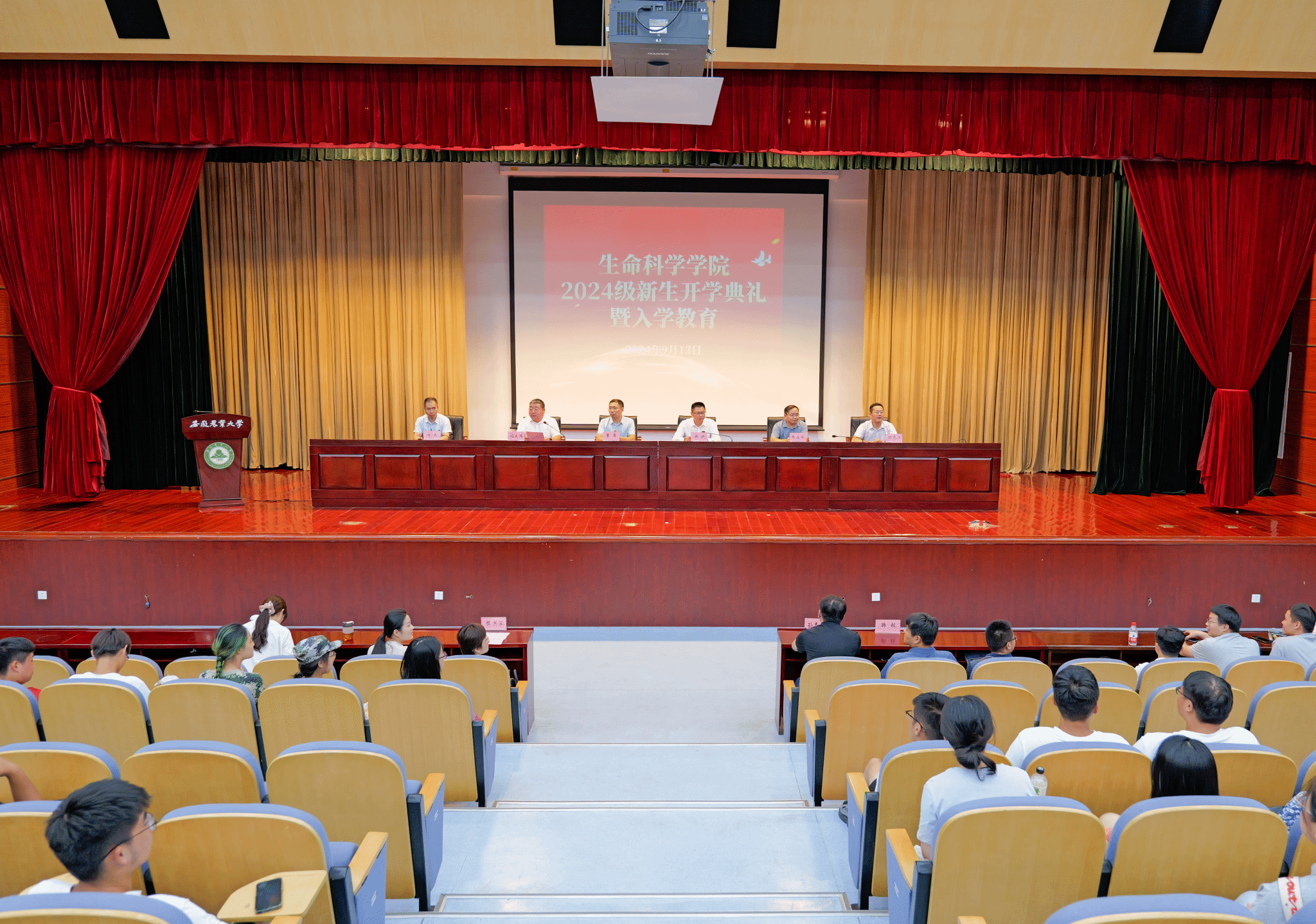 本网讯 金秋送爽开学日,万里鹏程由此始。9月13日晚8:00,生命科学学院2024级新生开学典礼暨入学教育在图书馆第一报告厅举办。出席本次开学典礼的有,学院党委书记曹雷、学院院长薛挺、学院党委副书记闫大玮、学院副院长张应烙、学院副院长顾龙江、学院副院长何兵,各系部主任,全体辅导员以及全体544名本、硕、博新生。开学典礼由闫大玮主持。