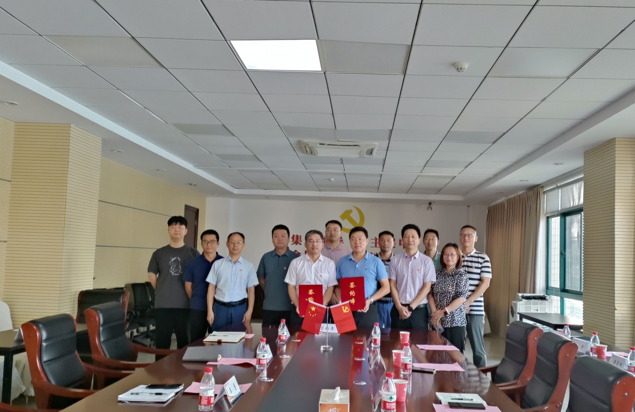 在中国广电安徽公司,信息与人工智能学院党委书记吴辰华一行参观了公司的业务展厅,实地了解了广电行业的前沿技术和业务流程。在中国广电合肥分公司,双方开展了座谈会,就支部共建、产学研用、校企合作等方面进行探讨交流,希望通过产教深度融合,以整合校企双方资源的方式,围绕实习实训基地建设、科研平台建设、教学合作、人才培养、就业思政、就业指导等内容,建立紧密合作关系。最后,双方围绕“理论同学、组织同建、品牌同筑、服务同行、成效同享签订”党建联盟协议。