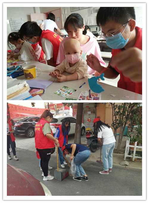 在梅山社区,同学们积极向社区居民介绍垃圾分类知识,增强了对垃圾分类的了解,促使社区居民能够积极参与到实践垃圾分类的行动中来,提高自觉爱护环境的意识。同时,同学们还进行义务清扫,还社区整洁干净环境。在大蜀山森林公园,同学们沿路捡拾园区内的垃圾,劝导游客安全旅游、文明旅游、低碳旅游;对乱吐乱扔、践踏草坪等不文明行为及时劝阻,并与园区的环卫工人进行交谈,了解大蜀山森林公园的垃圾垃圾分类情况。在“水滴小课堂”志愿服务中,同学们赴安徽省儿童医院看望白血病患儿,并为他们带来手工制作课和音乐课,通过制作爱国主题拼图、天安门模型等,教唱《我和我的祖国》等爱国歌曲,在培养孩子们爱国情怀的同时,也为他们送去了欢乐,减轻了生理痛苦。