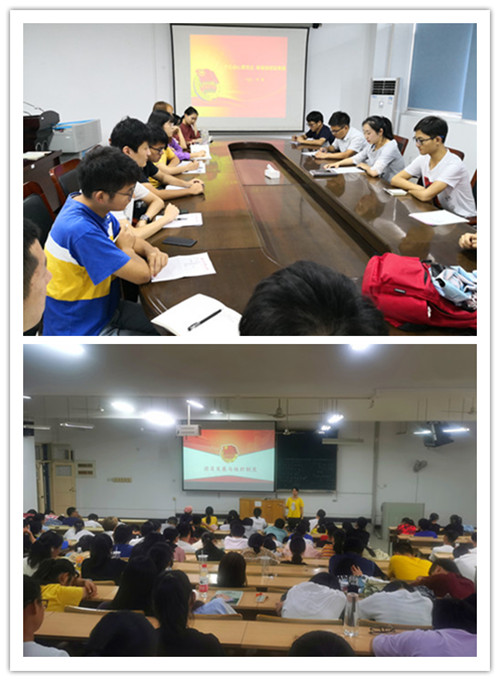9月中下旬以来,理学院团委组织青年讲师团深入学生开展主题教育,与青年学生面对面交流爱国之情。9月18日中午,院团委老师为学院学生骨干作“不忘初心跟党走,砥砺奋进绽青春”专题讲座。她从习近平总书记在正定的工作经历说起,沿着总书记执著追寻初心、担当使命的足迹,引导青年学生认识到中国共产党人的初心就是为中国人民谋幸福,为中华民族谋复兴。9月26号中午,院团委老师为全体2019级新生团员上团课,深入介绍中国共青团的性质与地位、团员发展程序及共青团的组织制度,并带领新生团员重温入团誓词,增强青年学生的团员意识。9月27日中午,院专职辅导员与2019级新生班长团支书面对面交流座谈,围绕“弘扬爱国奋斗精神,青春建功新时代”主题,引导学生加强政治理论学习,坚定“四个自信”,用爱国之情激荡青春之志;发挥示范引领作用,为全体2019级新生做勤奋学习、勇于实践的表率,努力成长为社会主义建设者和接班人。