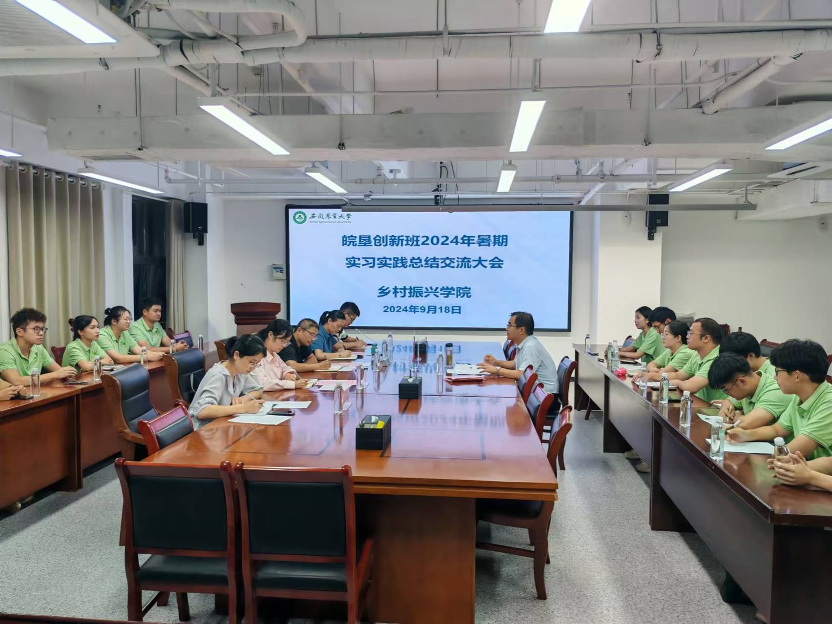 本网讯 9月18日下午,皖垦创新班2024年暑假实习实践总结交流大会在乡村振兴学院会议室召开,安徽农垦集团党委组织部部长卢子浩等一行五人参加交流会,会议由乡村振兴学院院长刘鹏凌主持。