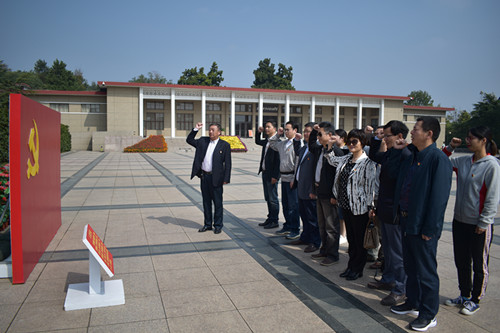 大蜀山烈士陵园内墓碑高耸,气氛庄严肃穆,在院党委书记张俊武的主持下,全体党员面向烈士墓碑默哀,向为新中国的成立献出自己宝贵生命的英烈们寄托深深的哀思。随后,张俊武带领大家重温入党誓词,铿锵有力的宣誓声响彻烈士陵园,使全体党员的心灵受到了震撼和洗礼。宣誓活动结束后,全体党员参观了革命烈士事迹陈列馆。
