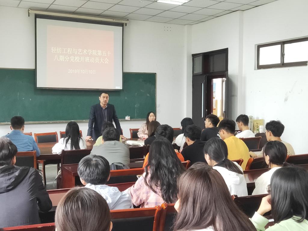 本网讯 10月10日中午,轻纺工程与艺术学院在学院四楼会议室召开了第五十八期分党校开班动员大会。院党委副书记吕剑秋和第58期入党积极分子参加会议,会议由学院团委老师主持。