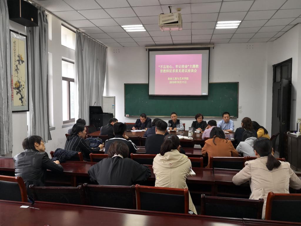 本网讯 为深入开展“不忘初心、牢记使命”主题教育,切实把工作中存在的问题、差距和不足找实、找准。10月10日中午和10月11日下午,轻纺工程与艺术学院在学院会议室分别召开“不忘初心、牢记使命”主题教育学生代表和教师代表征求意见座谈会。学院党政班子成员、系(室)主任、教师代表、党外人士、党支部书记和学生代表参加了会议,会议由院党委书记王冬平主持。
