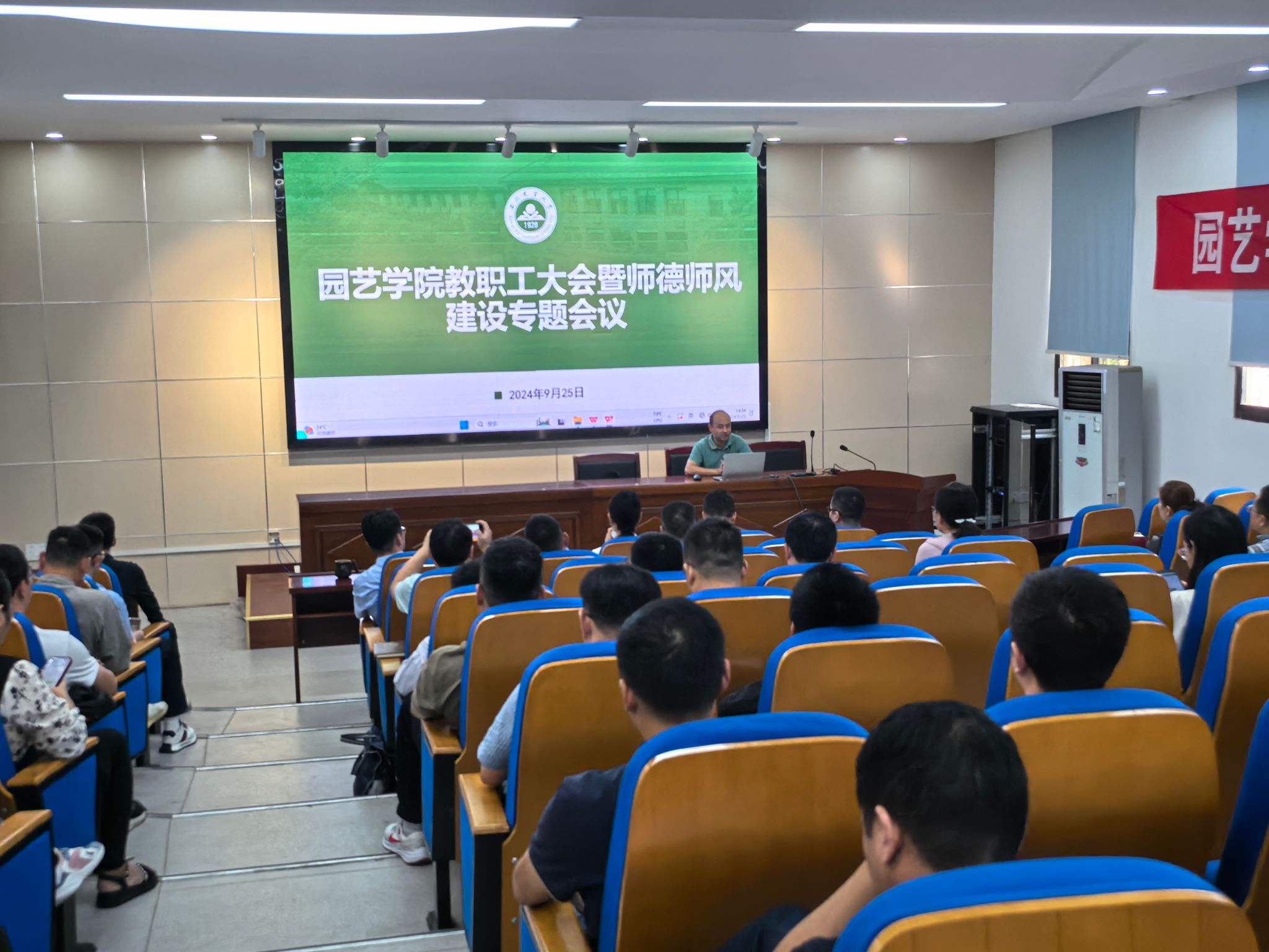 本网讯 为深入学习贯彻全国教育大会精神,加快实施教育家精神铸魂强师行动,9月25日下午,园艺学院在二教245报告厅召开全体教职工大会暨师德师风建设专题会议。会议邀请党委教师工作部、人事处、人才办副部长孙福作师德师风专题报告,学院全体教职工参加了会议,会议由院党委书记赵冠艳主持。