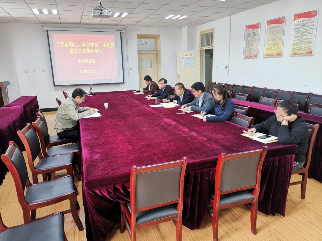 本网讯10月14日下午,农学院党委在十教518室围绕“不忘初心、牢记使命,做好党员好干部奋斗者追梦人”主题进行了第五次集中研讨。学校第三督导组成员、宣传部副部长夏成云参加研讨交流。学院领导班子、各党支部书记参加学习研讨。院党委副书记鄢高翔主持会议。
