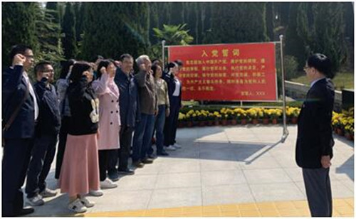 大家来到烈士纪念碑前向烈士致敬,表达缅怀之情,并在纪念碑前合影留念。随后,全体党员同志在学院党委委员的带领下,庄严地举起右手,重温入党誓词,铿锵有力的宣誓声响彻烈士陵园,使全体党员的心灵受到了震撼和洗礼。