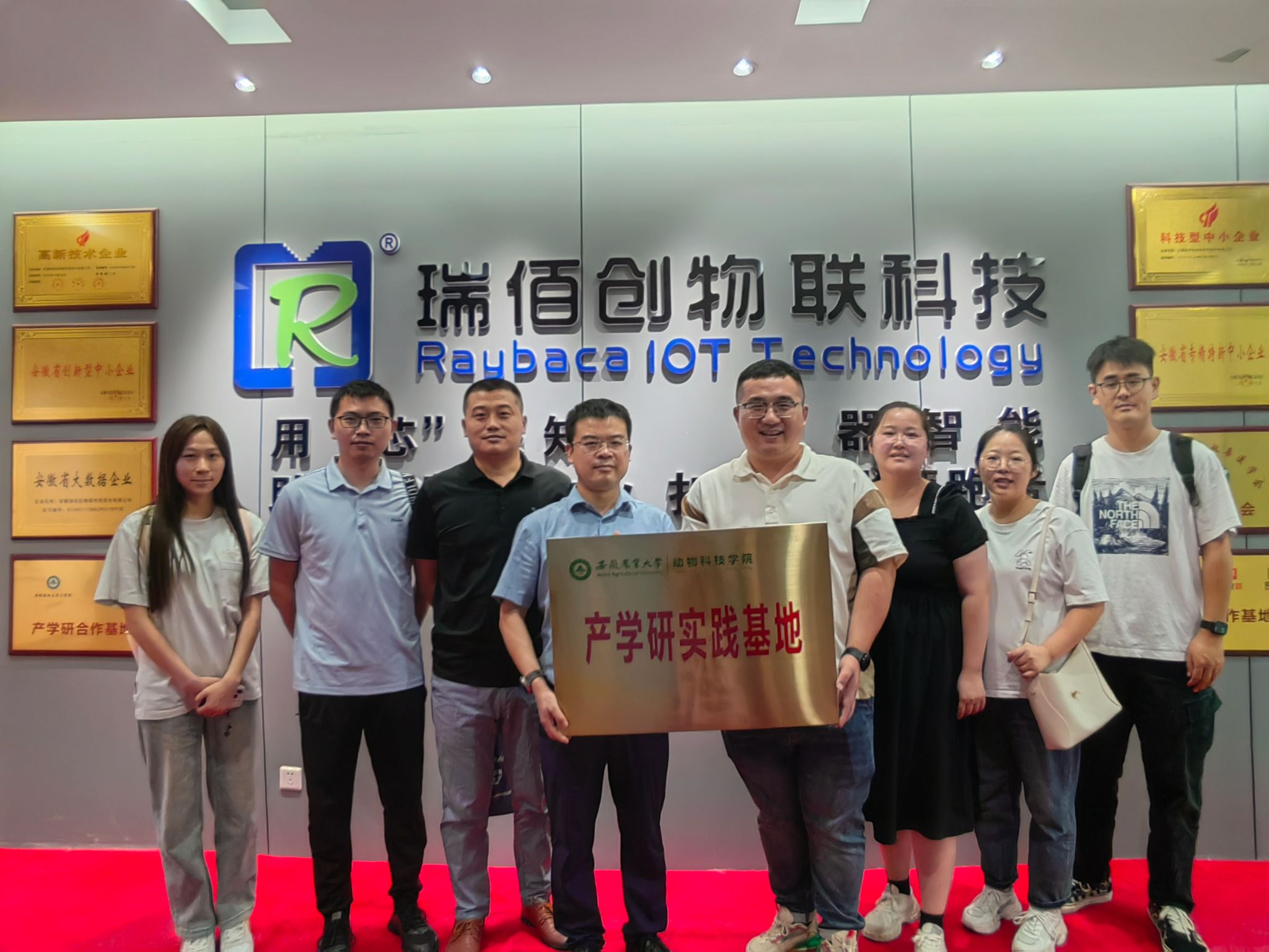 本网讯 9月29日,动物科技学院副院长凌英会教授带队前往安徽瑞佰创物联科技股份有限公司(安徽省畜牧兽医学会智能畜牧分会理事长单位),举行智慧畜牧“产学研实践基地”挂牌仪式。