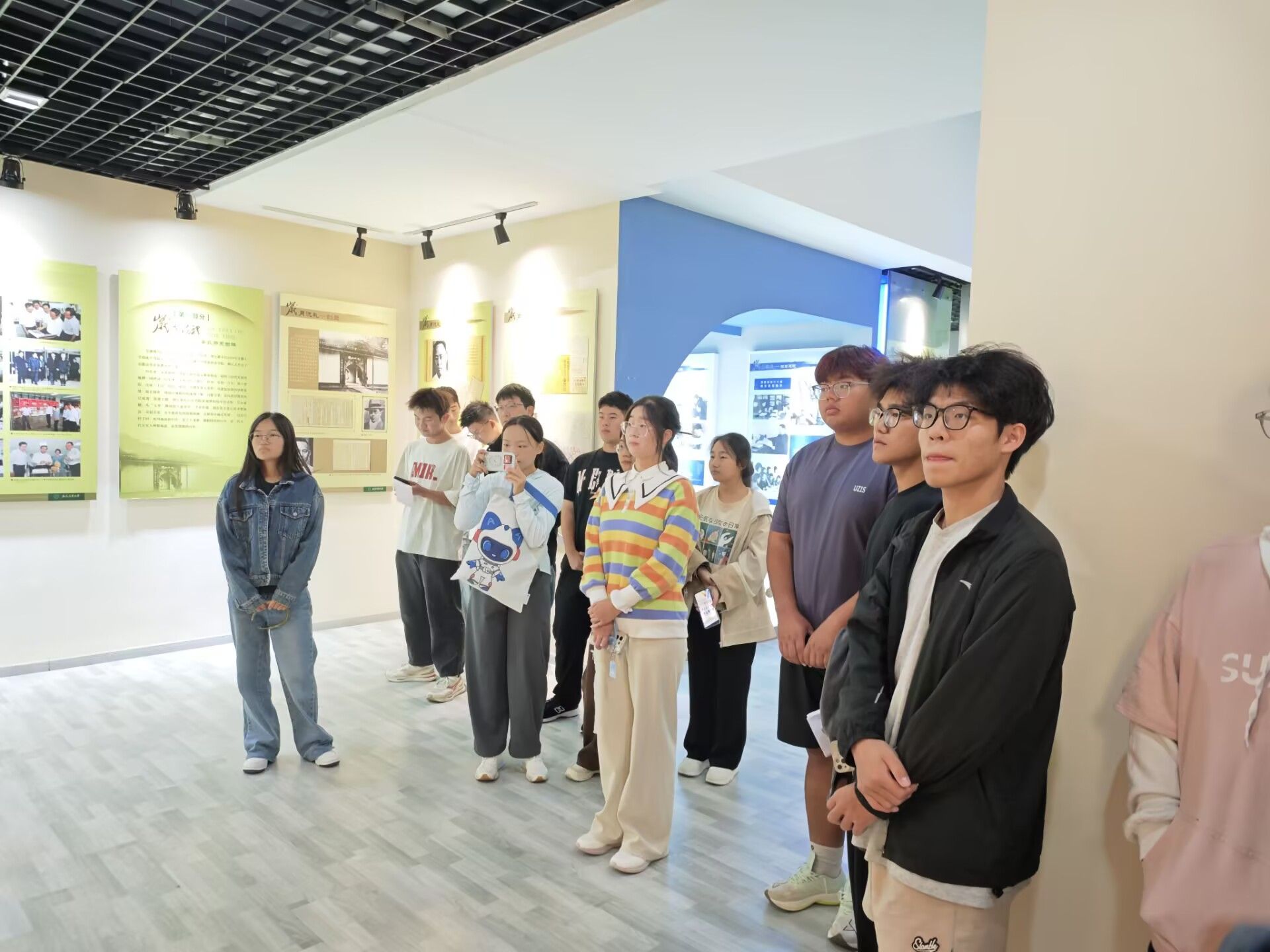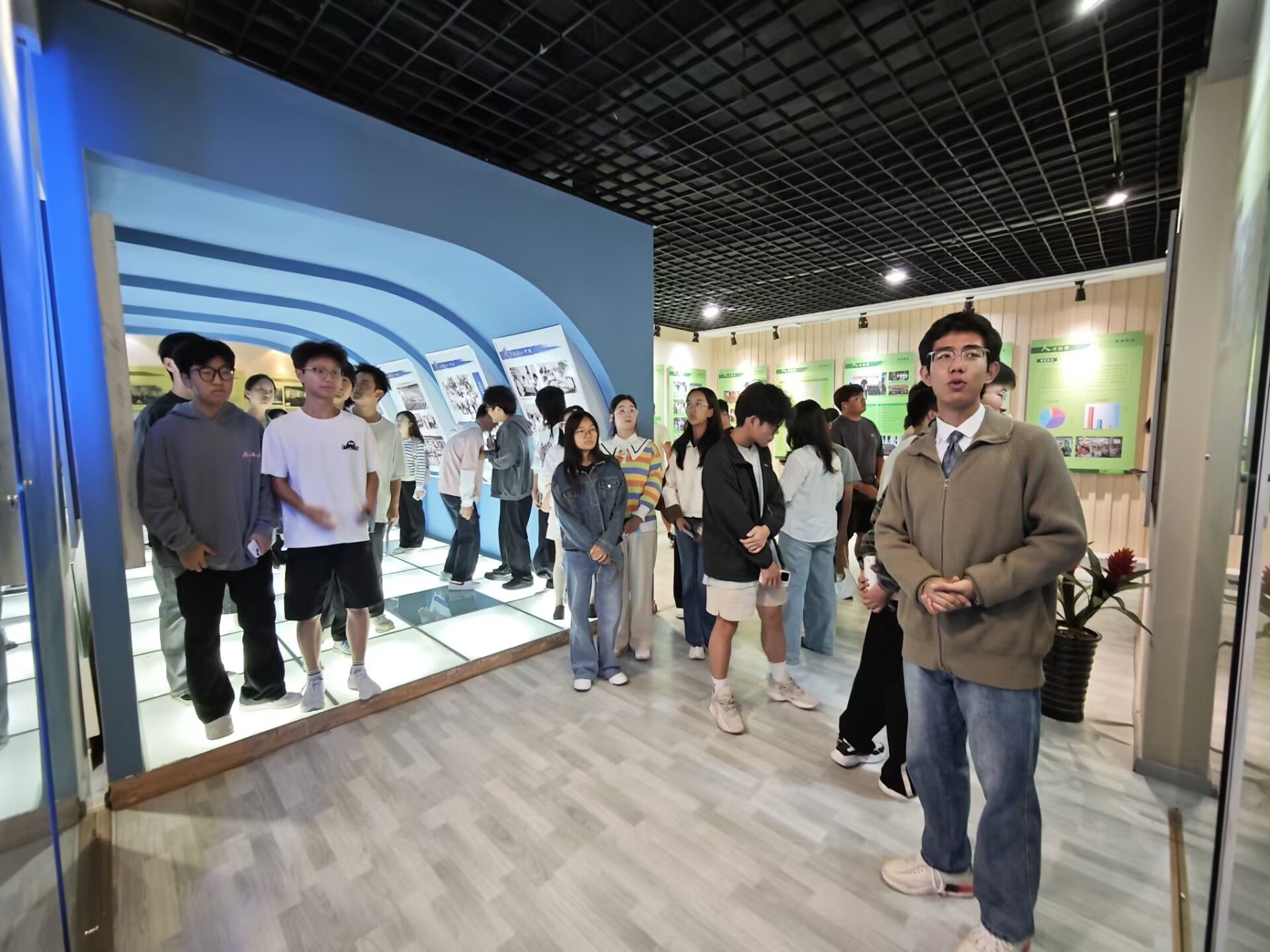 一幅幅珍贵的照片、一件件实物展品,无不让人感受到学校的沧桑巨变与蓬勃发展。参观过程中,讲解员为新生们细致梳理了学校发展的历史脉络,生动地讲述了安农人的奋斗故事。学生们认真聆听每一段讲解,细读每一段文字,停步于每张图片,仿佛穿越时空,亲历了学校的每一个重要历史节点。