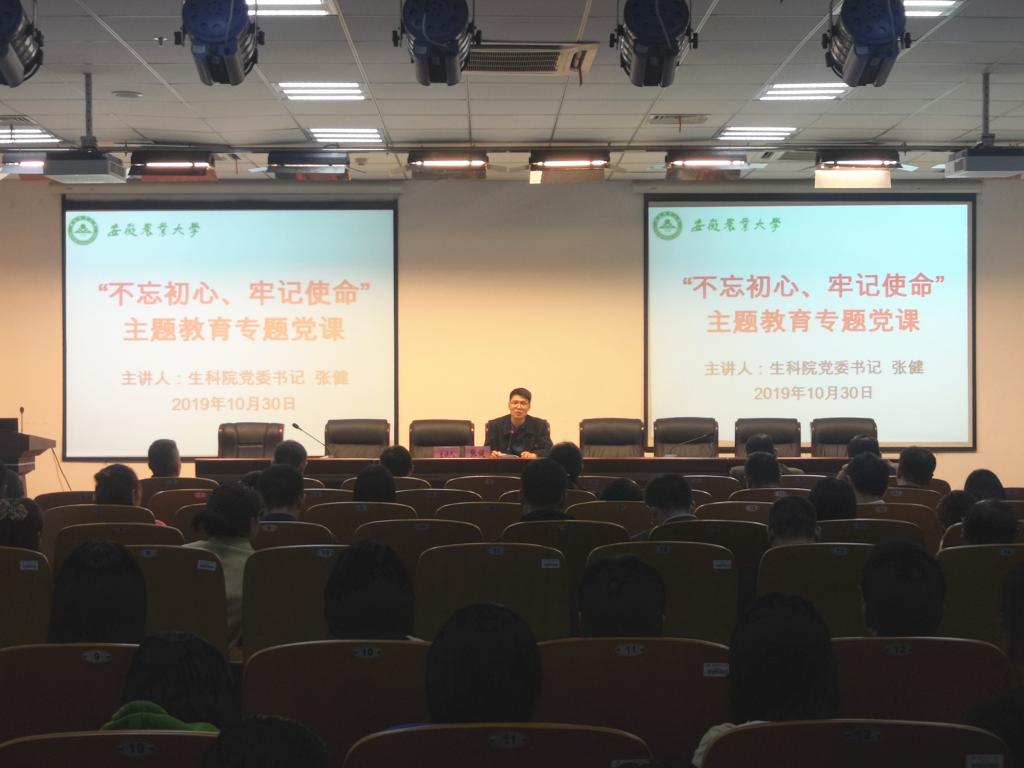 本网讯10月30日下午,生命科学学院党委书记张健在生物科技楼441会议室以“全面提升党建工作质量,为学院发展提供政治保证”为题讲专题党课。学校第四督导组副组长、档案馆馆长、机关第二党总支书记管志权携组员到会指导。学院部分师生党员参加了本次党课报告会。