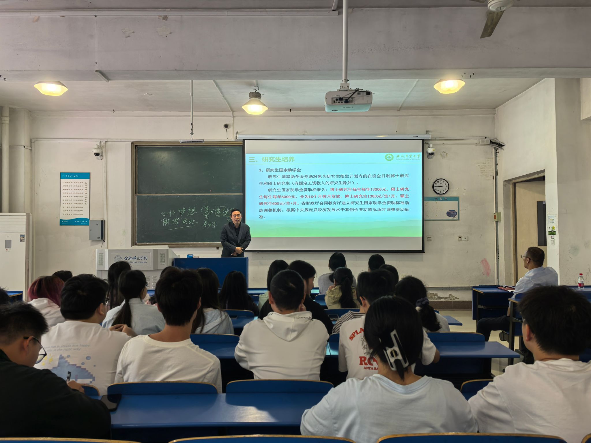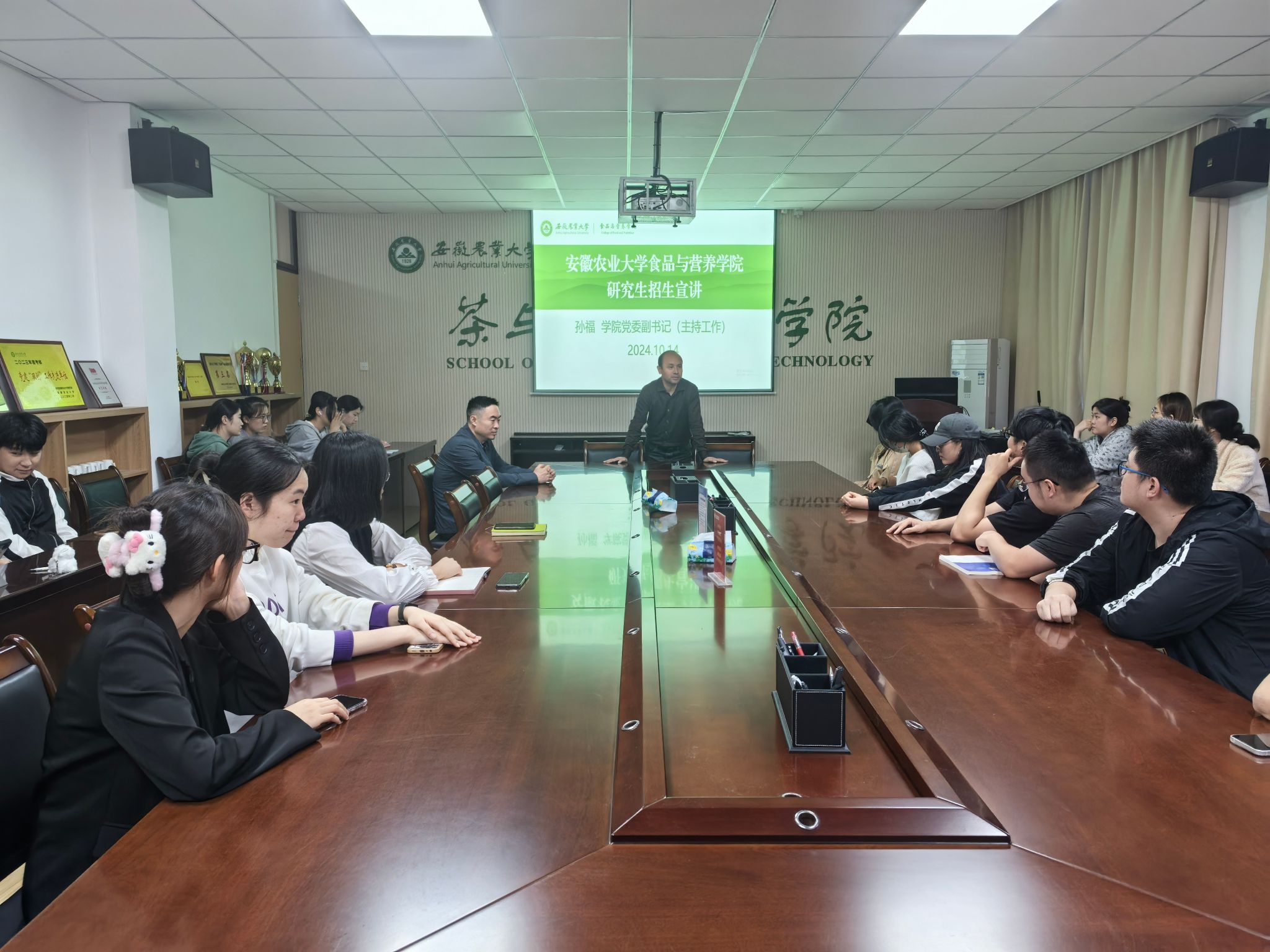 主动对接兄弟院校,吸引校外优质生源。10月12日,学院党委副书记(主持工作)孙福、副院长梁进赴合肥师范学院生物与食品工程学院开展研究生招生宣传。会上,孙福介绍了学校和学院的发展历程,以及学院在党建工作、师资队伍、优势学科等方面取得的建设成效。梁进重点围绕2025年学院研究生招生专业、科研平台、研究生教育教学、奖励资助体系等方面作了详细介绍,鼓励参会学生积极报考。宣传组一行与现场同学进行了面对面、一对一的沟通交流,现场气氛热烈。
