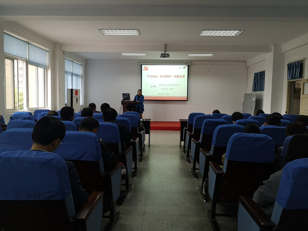 根据学校主题教育的统一部署安排,学院党委书记王伟围绕“初心”、“使命”的渊源和内涵、大学的“初心”和“使命”等问题展开,通过讲清楚对习近平总书记关于教育的重要论述的学习体会、讲清楚对初心使命的感悟、讲清楚存在的差距不足和讲清楚改进工作的思路措施等内容切实将专题党课和查摆问题有机结合,既呈现了一堂生动的党课,又解答了师生员工关注的问题;既说明了新时代我们究竟需要不忘什么、牢记什么,又传递了为党育人、为国育人、立德树人的担当使命;既展现了直面学院发展瓶颈的勇气,又传达了学院改革发展的决心。