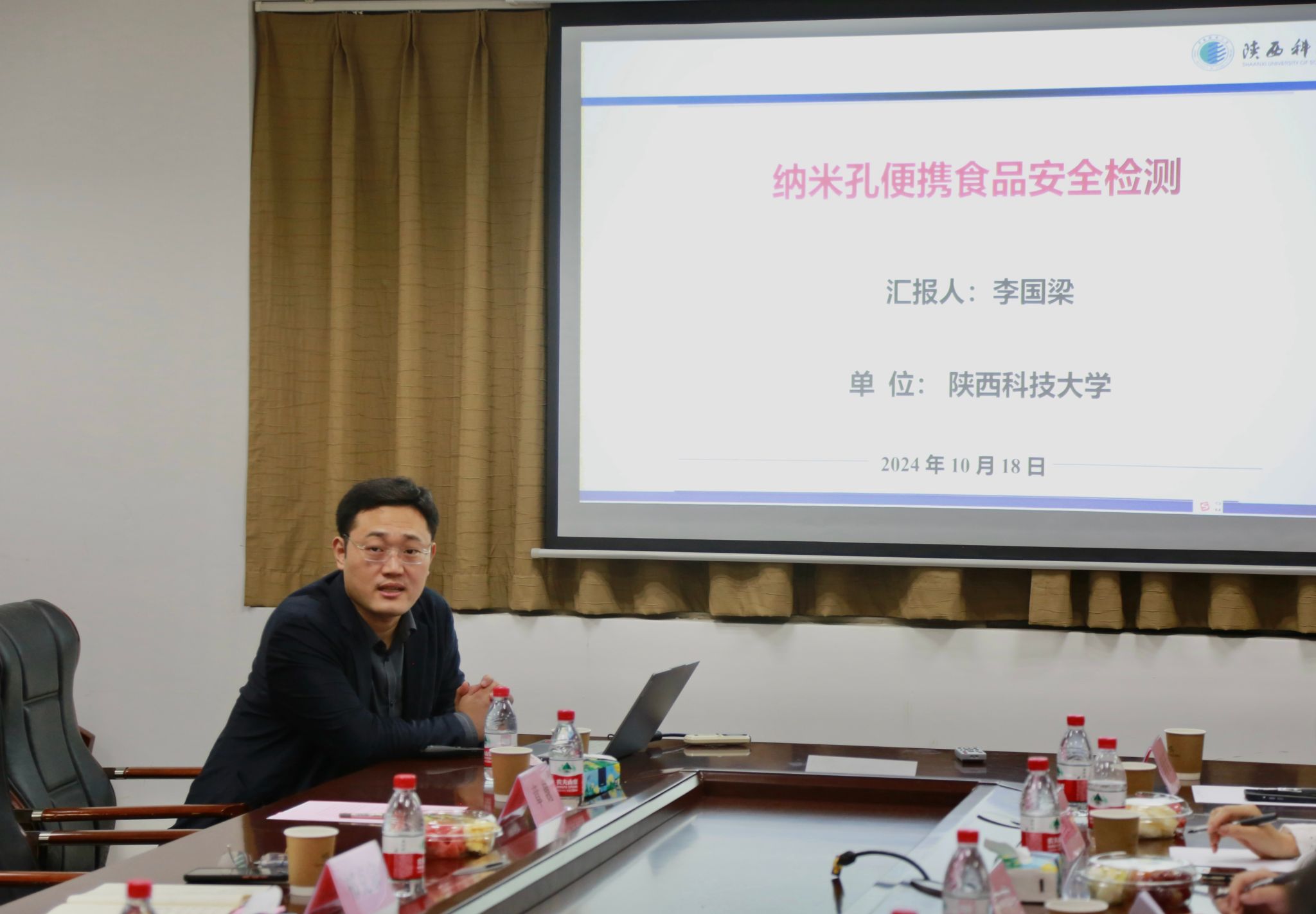 本网讯 10月18日下午,动物医学院动物性食品安全创新团队邀请陕西科技大学食品科学与工程学院院长李国梁教授在科技楼B320会议室为学院师生做了题为《纳米孔便携食品安全检测》的交流汇报。座谈会由动物医学院李琳教授主持,动物医学院党委副书记(主持工作)吴永红、党委副书记章巍、祁克宗教授、基础兽医系主任王勇、副主任王振宇及动物性食品安全创新团队师生出席座谈会。