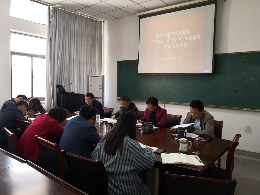 本网讯 11月11日上午,轻纺工程与艺术学院在学院四楼会议室召开“不忘初心、牢记使命”主题教育检视问题专题会议,学院领导班子成员、党委委员、纪委委员、系室部门负责人以及各党支部书记参加了会议,会议由学院党委书记王冬平主持。